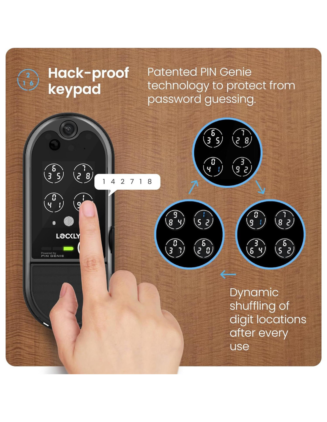 Tecnología patentada PIN Genie para proteger contra la adivinanza de contraseñas. Experimenta el mejor sensor de huellas dactilares confiable por la comunidad Lockly. Código de un solo uso o código de uso limitado para invitados, sin internet ni app. *3 OAC gratis por mes. Control desde Smartphone *Gestiona hasta 3 propiedades sin costo. Suscríbete a LocklyOS para gestionar. Bloquea y desbloquea tu puerta o verifica el estado de la puerta con tu voz. Configura el acceso para cada usuario para ayudar a gestionar tu cerradura, o simplemente diferentes códigos PIN / huellas dactilares. Gestión de Acceso Gestiona el acceso desde la app Lockly, sin importar si es permanente, recurrente o temporal. Monitor de control en tiempo real Monitorea, recibe alertas y otorga acceso de forma remota desde tu smartphone, disponible en cualquier momento y lugar. Verifica los registros de acceso para tener tranquilidad mientras tu puerta se bloquea y desbloquea. Disfruta de tranquilidad. Preestablece tu puerta para que se desbloquee cuando esperes múltiples invitados. Siempre informado Notificaciones por cada bloqueo/desbloqueo, nunca tendrás que preguntarte si tu hogar está asegurado, nunca más. Auto-bloqueo programable Nunca te preocupes si has cerrado tu puerta correctamente, nunca más. Timbre con Video Recibe notificaciones cuando los invitados presionen el timbre, dales la bienvenida a través del intercomunicador de video, incluso si estás a millas de distancia. Hub Wi-Fi Vision Connect Aumenta las capacidades de tu cerradura inteligente Vision Elite conectando el hub Wi-Fi Vision connect. Nuestro objetivo es proporcionarte la mejor calidad de productos para proteger tu hogar. 4 baterías AA para hasta 8 meses de duración de batería con alertas de batería baja. Verifica la compatibilidad antes de la compra para izquierda/derecha. Vivimos con la creencia de que la Cerradura Inteligente es un producto 'crítico para la misión', apoyándote siempre que lo necesites. Hay un Lockly para cada puerta, asegurando cada punto de acceso para tu tranquilidad. Lockly Vision Elite Lockly Vision Lockly Visage Zeno Series Lockly Secure Pro Lockly Secure Pro Lockly Secure Pro