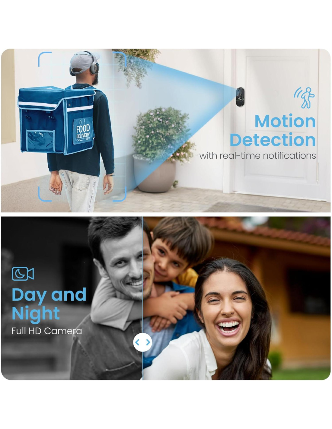 - Audio de Dos Vías y Sensor de Huellas Dactilares: Saluda a los visitantes desde cualquier lugar con conversación de dos vías. Desbloquea tu cerradura de video en solo 0.5 segundos usando el sensor biométrico de huellas dactilares, almacenando hasta 99 huellas dactilares para privacidad y mejor precisión.