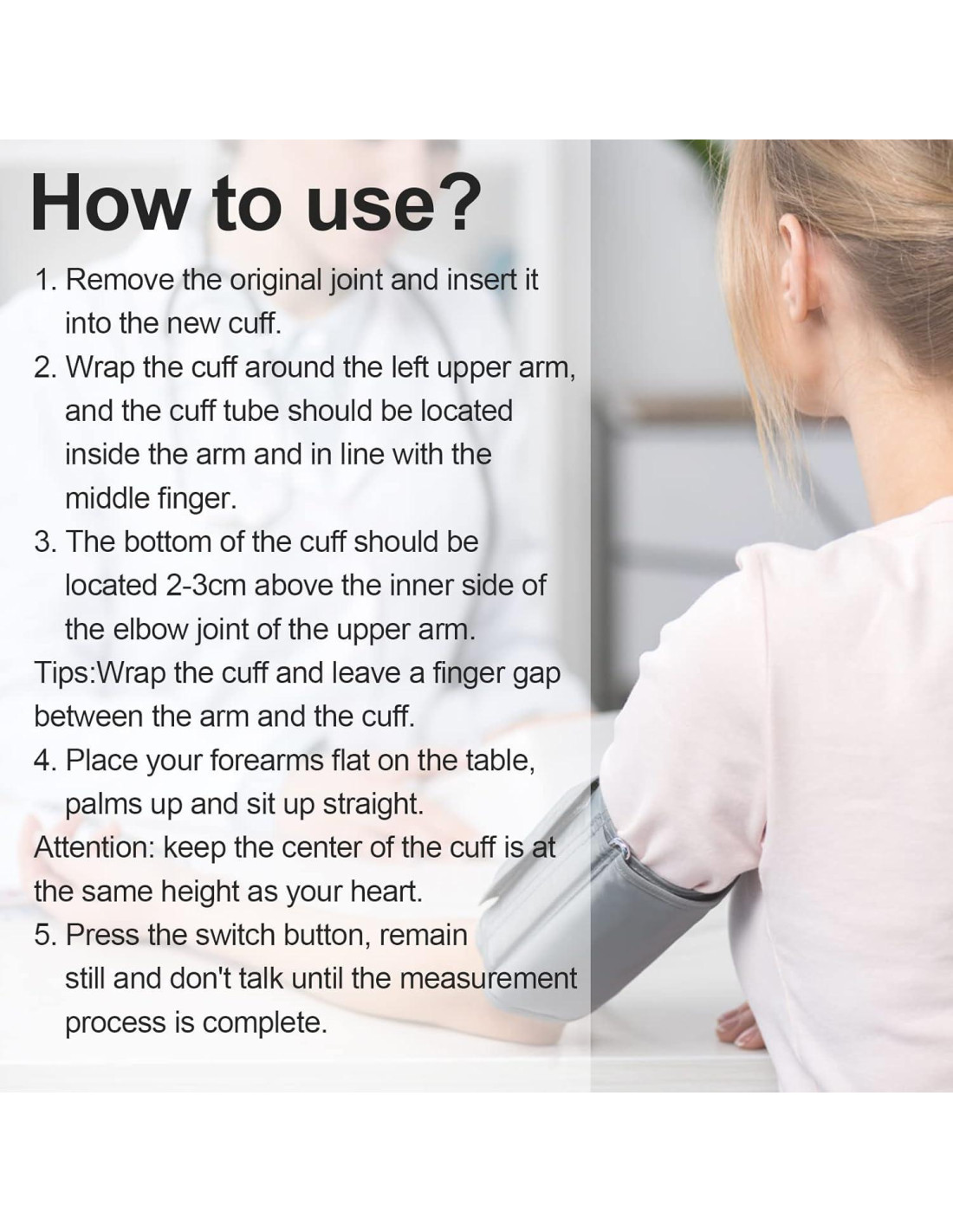 - Manga Extra Grande: Esta Manga de Presión Arterial es adecuada para Circunferencia de Brazo de 22-52CM (8.7-20.5 Pulgadas)