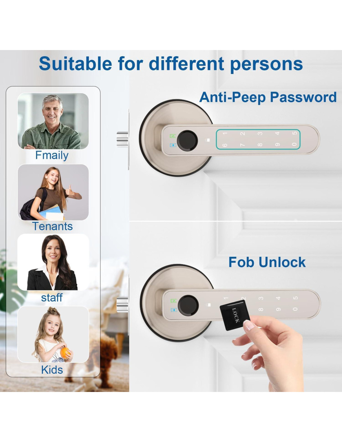 - Uso: Cerradura de puerta con huella dactilar controlada por app para dormitorio, puerta trasera, hogar, casa, Airbnb, hotel, apartamento, oficina, alquiler, garaje, etc.