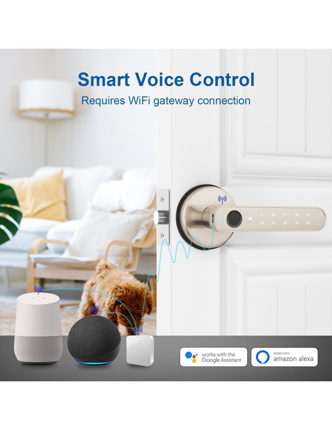 - Varias formas convenientes de desbloquear: Cerradura de puerta sin llave: App inteligente + 100 huellas dactilares + 100 códigos de acceso + 100 tarjetas IC + 2 llaves mecánicas. Mientras tanto, el control por voz de Alexa y Google Assistant se puede usar conectando el gateway BAFUWEIY (se vende por separado);