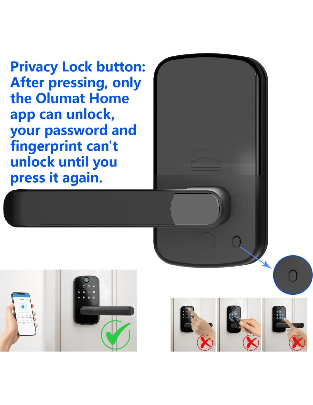 - [6 Opciones de Desbloqueo] Puedes desbloquear la puerta usando reconocimiento de huellas dactilares, una aplicación móvil habilitada para Bluetooth, código PIN personalizado, llaveros, llaves mecánicas, o incluso comandos de voz de Alexa (Requiere el gateway WiFi Olumat).