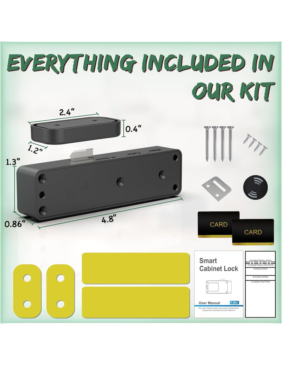 - Duradera y de Larga Duración Hecha de materiales duraderos con un diseño oculto, la cerradura de cajón RFID mejora la seguridad contra robos y manipulaciones. La instalación fácil y sin herramientas hace que actualizar la seguridad de tu hogar sea sencillo.