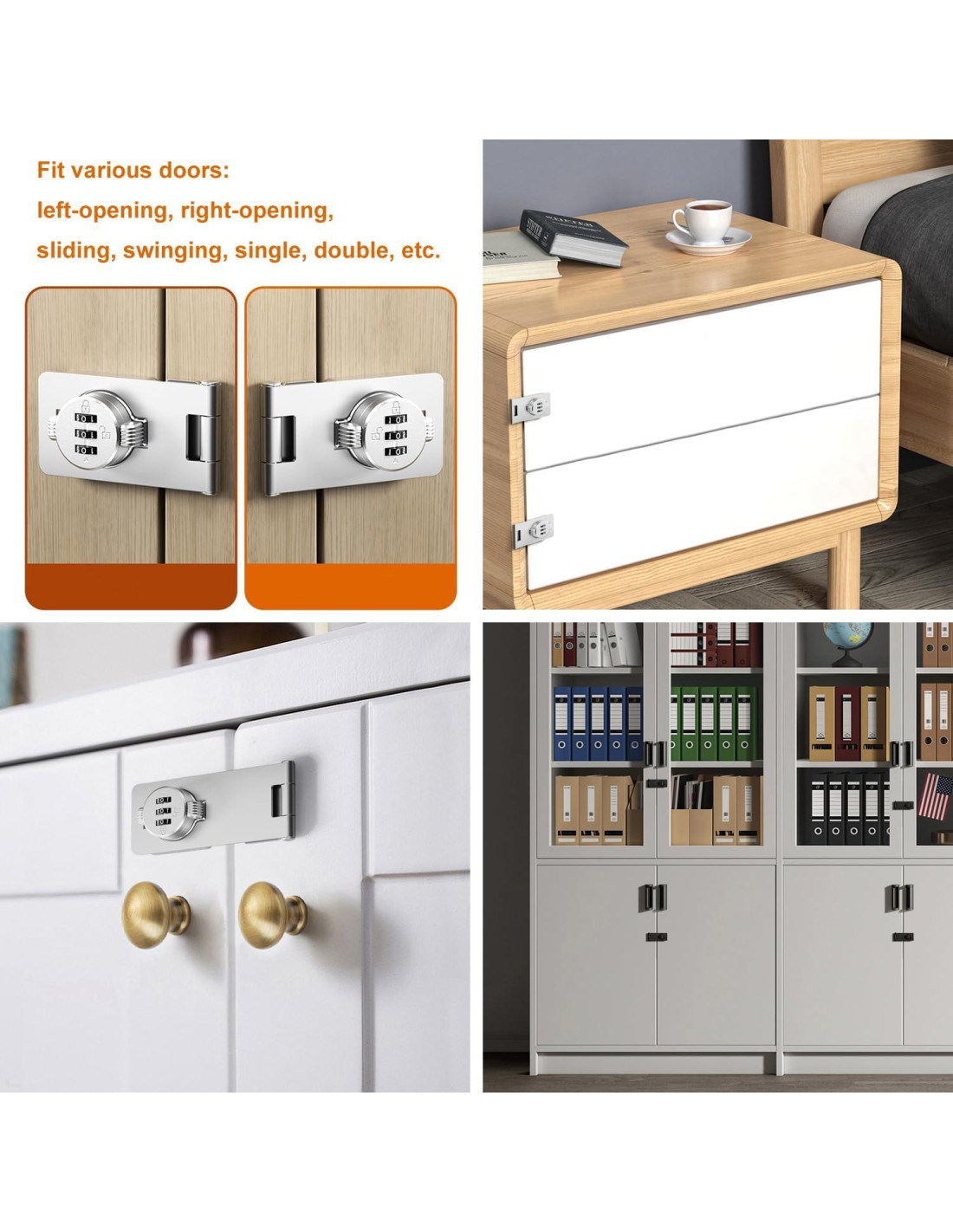 ETEKJOY Cerradura de Armario Sin Llave Cerradura de Combinación de 3 Dígitos Pestillo de Gancho Perilla de Giro Cajón de Madera Armario Caja de Seguridad para Armas Real Sin Llave. Ya no te preocupes por perder tu llave. Fácil de Usar. Gira la contraseña correcta. Gira la perilla. Retira el pestillo. Desbloqueo completado. Seguro y Robusto. 3 Dígitos proporcionan 1,000 posibles contraseñas. Puedes establecer tu propia contraseña y cambiarla libremente. La cerradura está hecha de aleación de zinc metálico. Mantén tus cosas seguras ahora. Fácil de Instalar. Instalación DIY. Atornilla la cerradura a tu armario fácilmente. Sin pasos o configuraciones de instalación complicadas. Amplio Uso. Es adecuada para puertas de apertura a la derecha e izquierda, puertas corredizas y abatibles, armarios de madera para el hogar y la oficina, cajones, armarios, lockers, cajas fuertes para armas, cajas para mascotas, etc. El paquete incluye: un juego de cerradura con tornillos. Nota: 1. La contraseña predeterminada es 000. 2. Si deseas establecer una nueva contraseña, por favor haz lo siguiente: gira la contraseña antigua, gira la perilla a la posición desbloqueada, usa el pin para presionar el agujero de reinicio, gira la nueva contraseña, suelta el pin del agujero. Listo. 3. La perilla solo se puede girar después de que se haya girado la contraseña correcta.