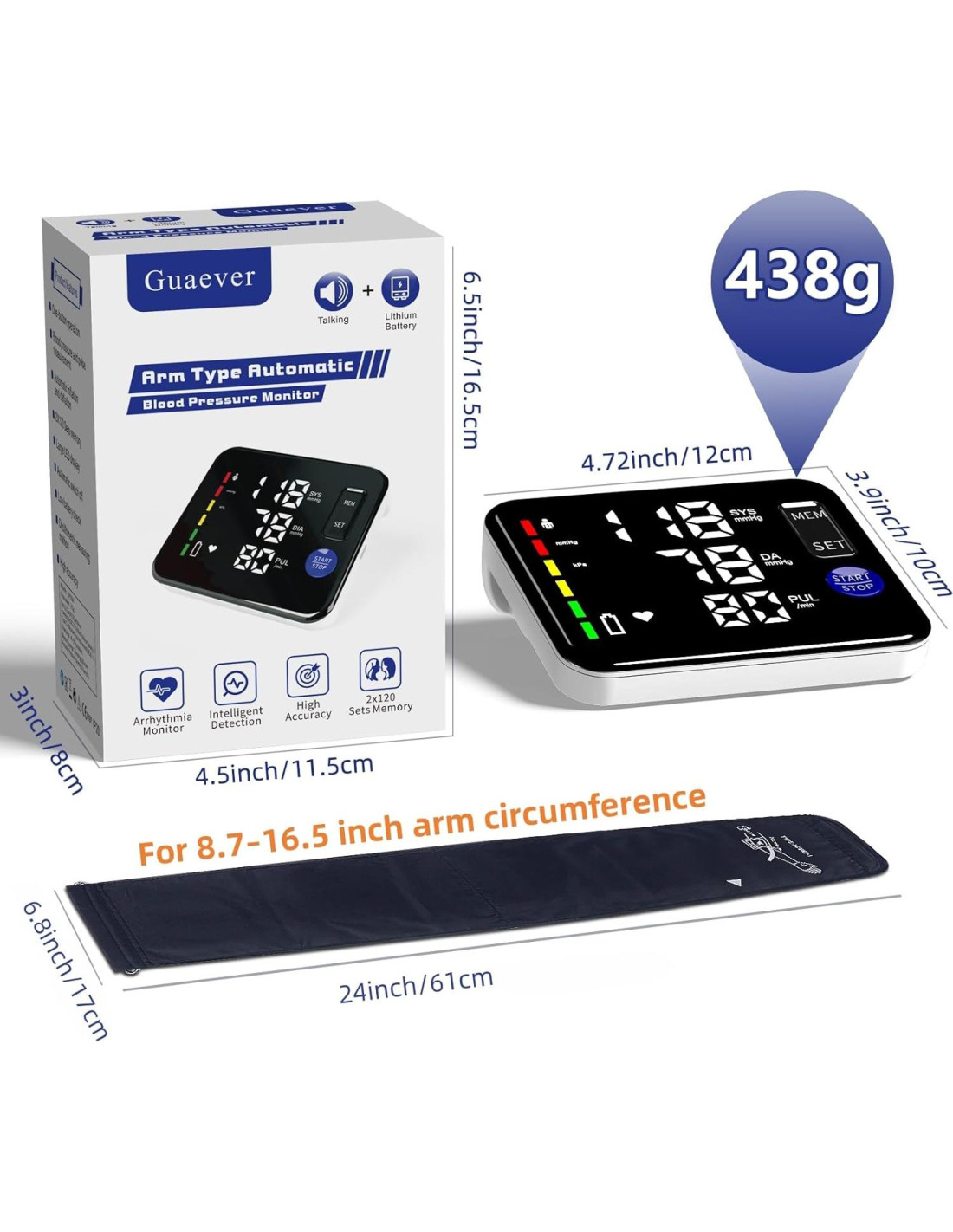 - Monitor de Presión Arterial Rápido y Preciso para el Brazo Superior: Mantente al tanto de tu salud con estos monitores de presión arterial rápidos y precisos para uso en el hogar. Este monitor de presión arterial Guaever cuenta con la última tecnología de chip y un algoritmo avanzado entrenado en más de 1,000 sujetos de prueba, asegurando lecturas de presión arterial altamente precisas. También monitorea tu frecuencia cardíaca y te alerta si se detecta algún latido anormal.