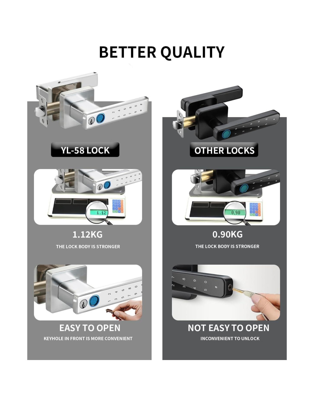 - [Sensor de Huella Dactilar Grande]: La perilla de puerta con huella dactilar Hiencetec utiliza un mejor biométrico de huella dactilar, precisión de reconocimiento de huellas dactilares de hasta 99%, con lectura rápida en solo 0.25s y desbloqueo en apenas 1s.