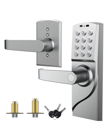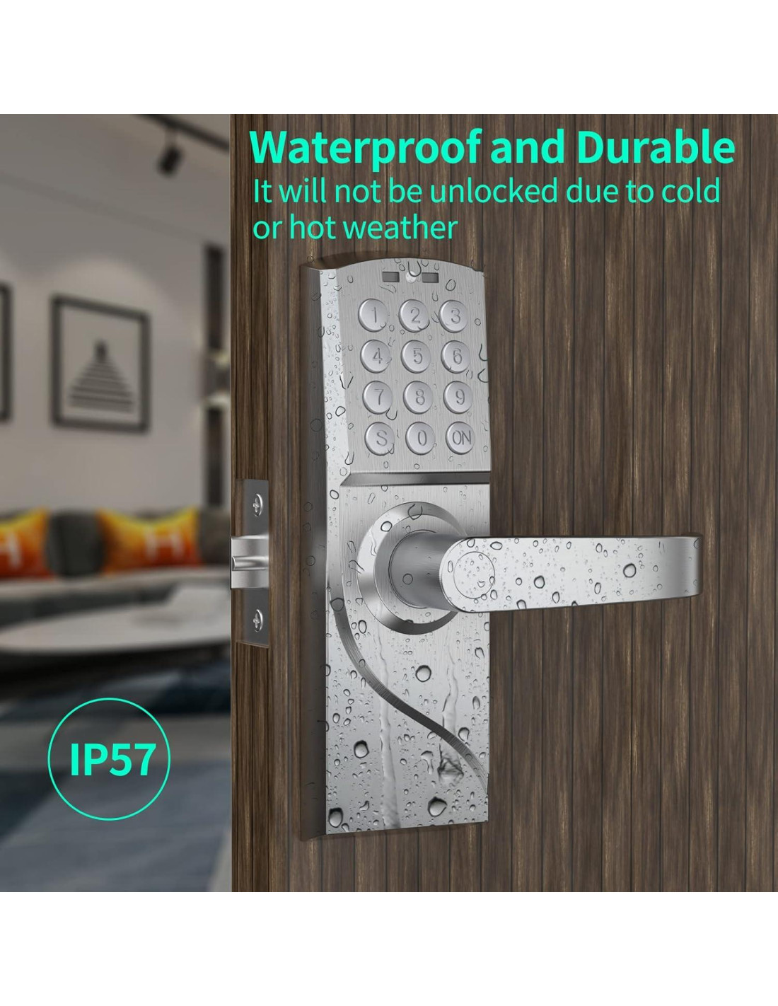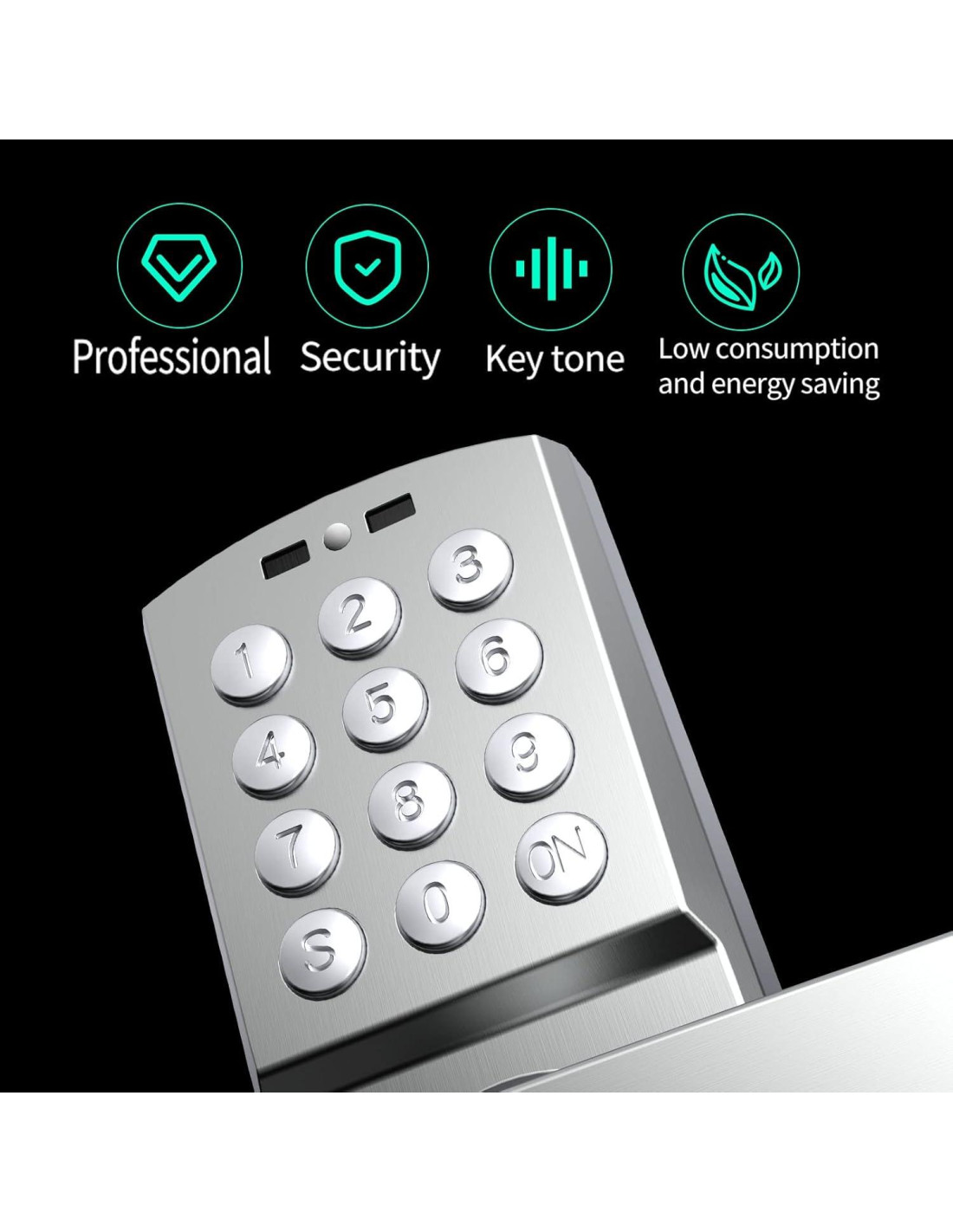 - SIN RESIDUO DE HUELLA DACTILAR: Esta manija de puerta con teclado tiene un botón de aleación de zinc, resistente a diez mil veces de desgaste, puede eliminar tus huellas dactilares, y no necesitas preocuparte por que alguien extraiga huellas dactilares para entrar. Esta cerradura tiene una función de bloqueo automático cuando la puerta está cerrada, sin necesidad de volver a bloquearla, lo que es más conveniente para garantizar tu seguridad.