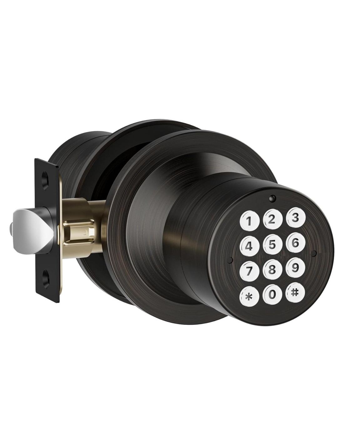 - Seguridad Avanzada: Con función silenciosa, la perilla de puerta inteligente evita que otros escuchen sus códigos. La combinación de silencio y la contraseña de 15 dígitos aumenta la seguridad de la cerradura de puerta electrónica.