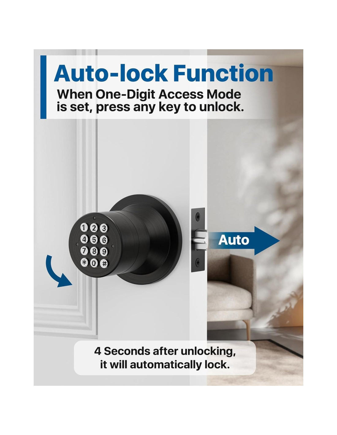 - Para Amantes de las Mascotas: Agregue nuevos códigos de usuario para sus vecinos o cuidadores de mascotas mientras está fuera, y elimine fácilmente sus códigos en la perilla de puerta eléctrica cuando regrese. No es necesario lidiar con la eliminación de cerraduras de la puerta, ya que toda la programación se puede hacer fácilmente a través de la perilla de entrada sin llave.