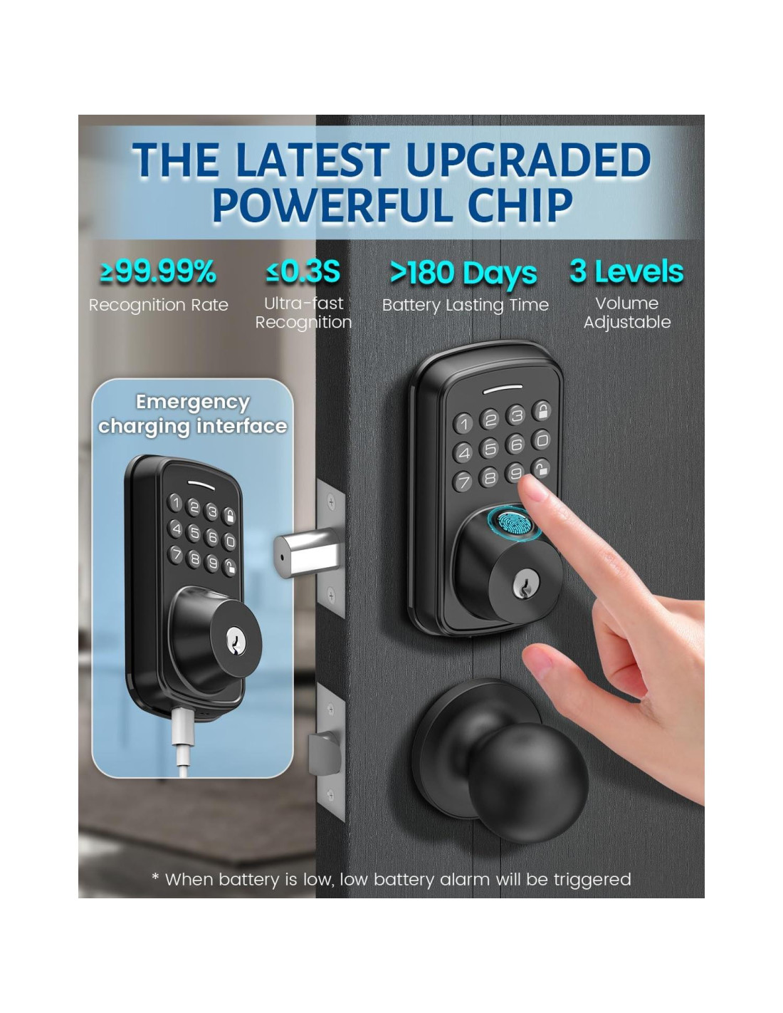 - [Desbloqueo en un abrir y cerrar de ojos - Reconocimiento de huella digital de alta precisión] ¡No más buscar las llaves! Esta cerradura de puerta con huella digital se desbloquea en solo 0.3 segundos utilizando tecnología biométrica avanzada con un 99.99% de precisión. Funciona de manera confiable en clima caliente, frío o húmedo.