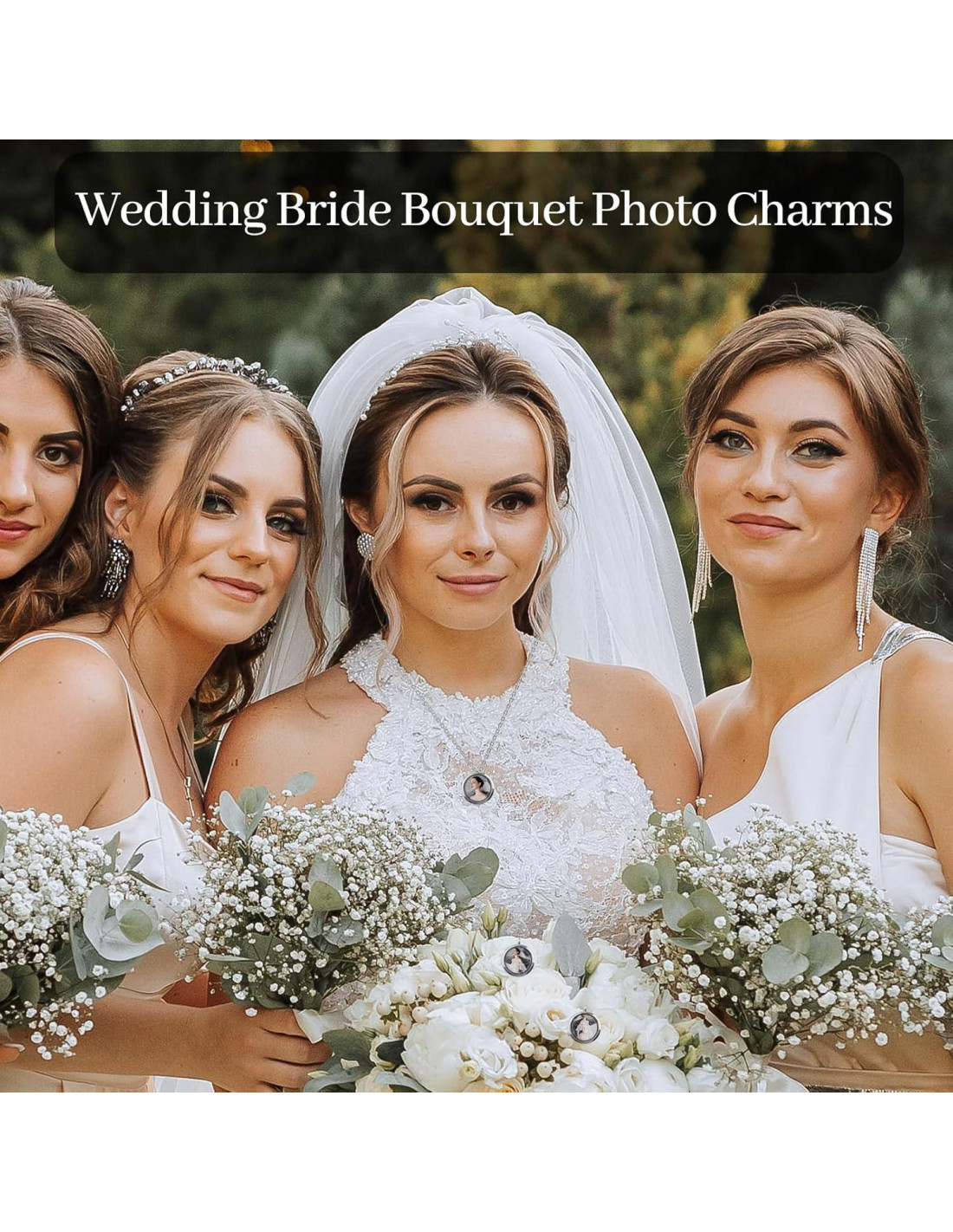 - TAMAÑO Y PAQUETE -- El paquete incluye 4 piezas de encantos de ramo de marco de imagen en plata blanca. Cada encanto colgante mide aproximadamente 3.00*3.61*0.61 cm.
