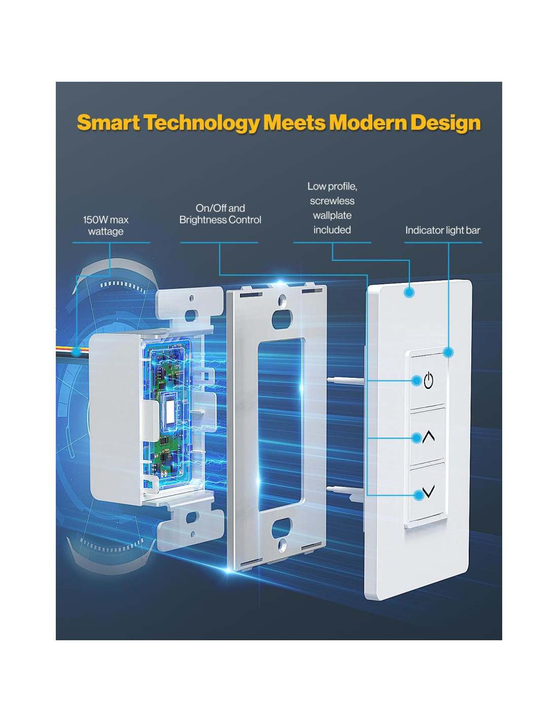 - DISEÑO ELEGANTE Y MODERNO - Con su diseño limpio y elegante, nuestro Interruptor de Atenuación Inteligente complementará el aspecto y la sensación de cualquier decoración del hogar.