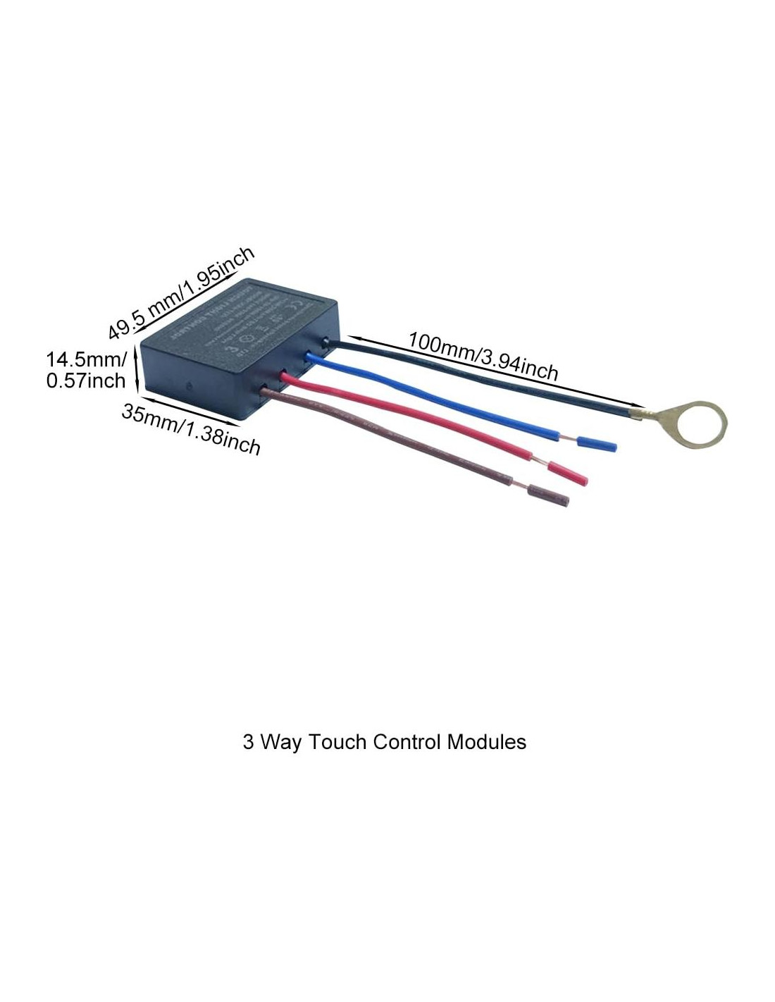 Característica: 3-VÍAS REGULABLE 3-vías controles la luminosidad de la luz, ligeramente brillante/medio brillante/brillante completo, que se puede ajustar a voluntad según las necesidades reales, adecuado para dormir, entretener, leer o trabajar. APLICACIÓN AMPLIA El interruptor de control táctil se utiliza ampliamente en lámparas de mesa, lámparas de mesita de noche, lámparas de mesa lateral, lámparas decorativas o lámparas de acento, múltiples tipos de bombillas, práctico y conveniente. SIN RUIDO Chips de regulación incorporados, el sensor de control táctil proporcionará una experiencia de regulación suave, no se permite regular o encender la luz en el cable de alimentación, sin ruido, no perturbará el sueño de su familia. FÁCIL DE INSTALAR Los cables azul y marrón están conectados al enchufe, los cables azul y rojo están conectados a la fuente de luz (el azul está conectado a dos conjuntos de cables al mismo tiempo), y el cable negro es el cable táctil, generalmente conectado al panel de hardware. SEGURO DE USAR Está hecho de material plástico, aislante y retardante de llama, y el conductor de cobre tiene un rendimiento estable. La tensión nominal es de 110-230V, la corriente nominal es de 3A, seguro de usar, adecuado para dormitorio, sala de estar o entrada. Especificaciones: Color: negro Material: plástico Material del conductor: cobre Tensión nominal: 110-230V Corriente nominal: 3A Frecuencia nominal: 50/60HZ Modo de iluminación (ajustable): ligeramente brillante/medio brillante/brillante completo Tamaño: (L x W x H x longitud del cable) aproximadamente 49.5 x 35 x 14.5 x 100mm (1.95 x 1.38 x 0.57 x 3.94 pulgadas) El paquete incluye: 2 piezas x interruptor regulador táctil Nota: 1. Debido a la diferencia de luz y pantalla, el color del artículo puede ser ligeramente diferente de las imágenes. 2. Por favor, permita diferencias de 0.5-2 cm debido a la medición manual.