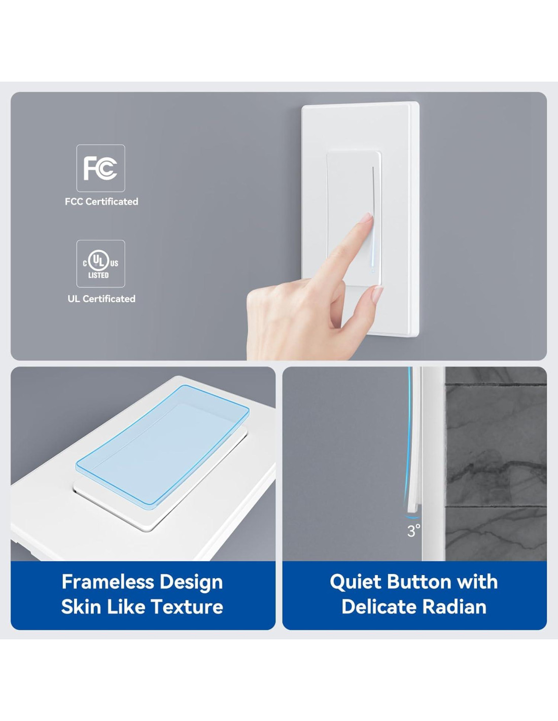- Fácil de Instalar: Perfil ultra delgado deja más espacio en la caja eléctrica para un fácil cableado. Listado UL y CUL, certificado FCC para seguridad y fiabilidad. Tamaño de la placa de pared: 12.38 x 7.95 cm. {Se requiere cable neutro.}