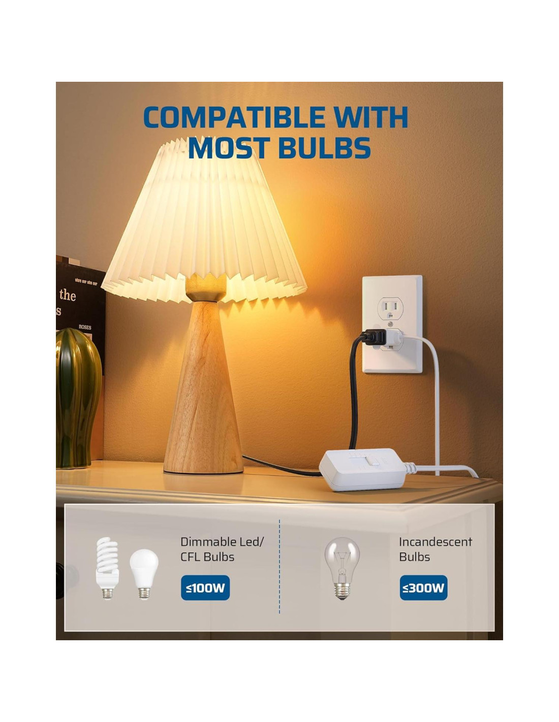 - Regulador Compatible con LED - El interruptor regulador en línea funciona con bombillas LED/CFL regulables de hasta 100 vatios o 300 vatios incandescentes; Voltaje de Entrada 110 - 120Vac