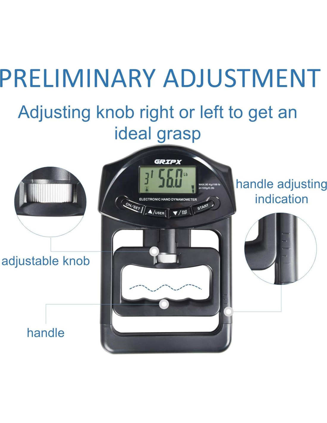 La fuerza de agarre, también conocida como fuerza de la mano, es una medida antropométrica que indica la salud muscular en las manos y antebrazos. La medida a menudo se incluye en estudios longitudinales porque muestra el bienestar general de un sujeto adulto. El dinamómetro digital de mano GRIPX puede ser una forma fácil y económica de evaluar la condición de salud de un individuo y también ayudar a medir el progreso de la fuerza de agarre, lo que podría ser adecuado para la supervivencia. Es esencial reconocer que una mala fuerza de agarre no representa necesariamente una mala salud. Sin embargo, incluso solo 10 minutos de actividad física cada día están relacionados con evitar discapacidades, mejorar la movilidad y vivir más tiempo. La fuerza de agarre se debilita a medida que envejecemos, afectando eventualmente nuestro día a día. Cosas simples como abrir frascos, cargar compras y girar manijas de puertas se vuelven más o menos difíciles dependiendo de la fuerza de las manos. Tu agarre también afecta tus músculos de empuje. Tu cuerpo mantiene tus músculos generales relativamente equilibrados. Tus músculos de empuje solo pueden volverse tan fuertes como tus músculos de tracción. Por lo tanto, un agarre más fuerte se correlaciona también con músculos de empuje más fuertes. Un apretón de manos firme dejará una fuerte impresión. No se necesita mucho para tener un apretón de manos firme, pero piensa en cuando una persona te dio la mano y sentiste como si Thor lo hubiera agarrado. Sin entrenamiento de fuerza de agarre, los deportes, el levantamiento de pesas o incluso las tareas diarias mundanas pueden resultar en molestias menores o condiciones más graves como el codo de tenista y el síndrome del túnel carpiano.