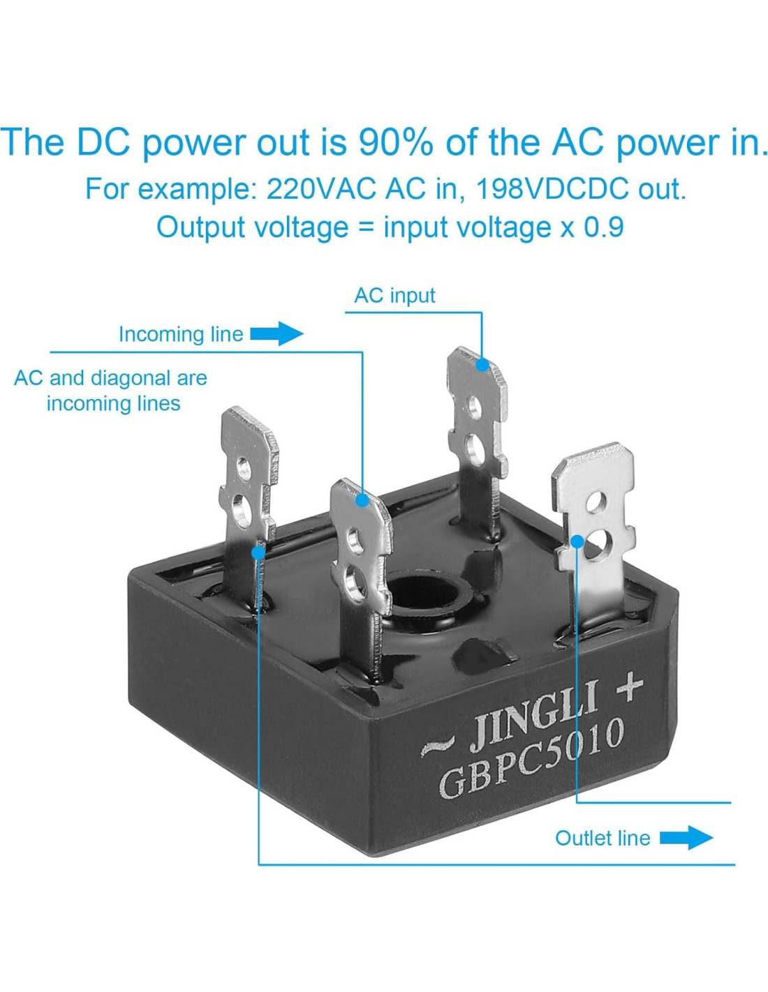 - Especificación: Tamaño: 29x29x23mm (1.16x1.16x0.92 pulgadas); Voltaje de pico repetitivo inverso: 1000V; Corriente rectificada directa: 50A; Voltaje de aislamiento: 2500V; Corriente de carga resistiva: 25A; Lista de Empaque: 6 Pcs Diodo Rectificador