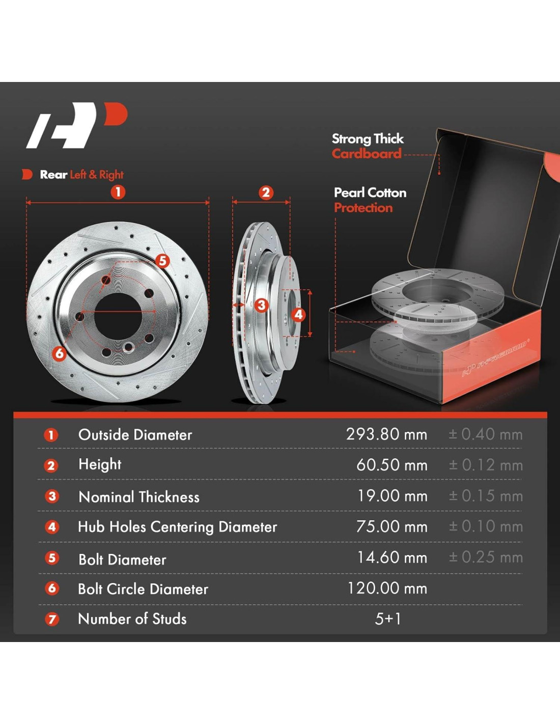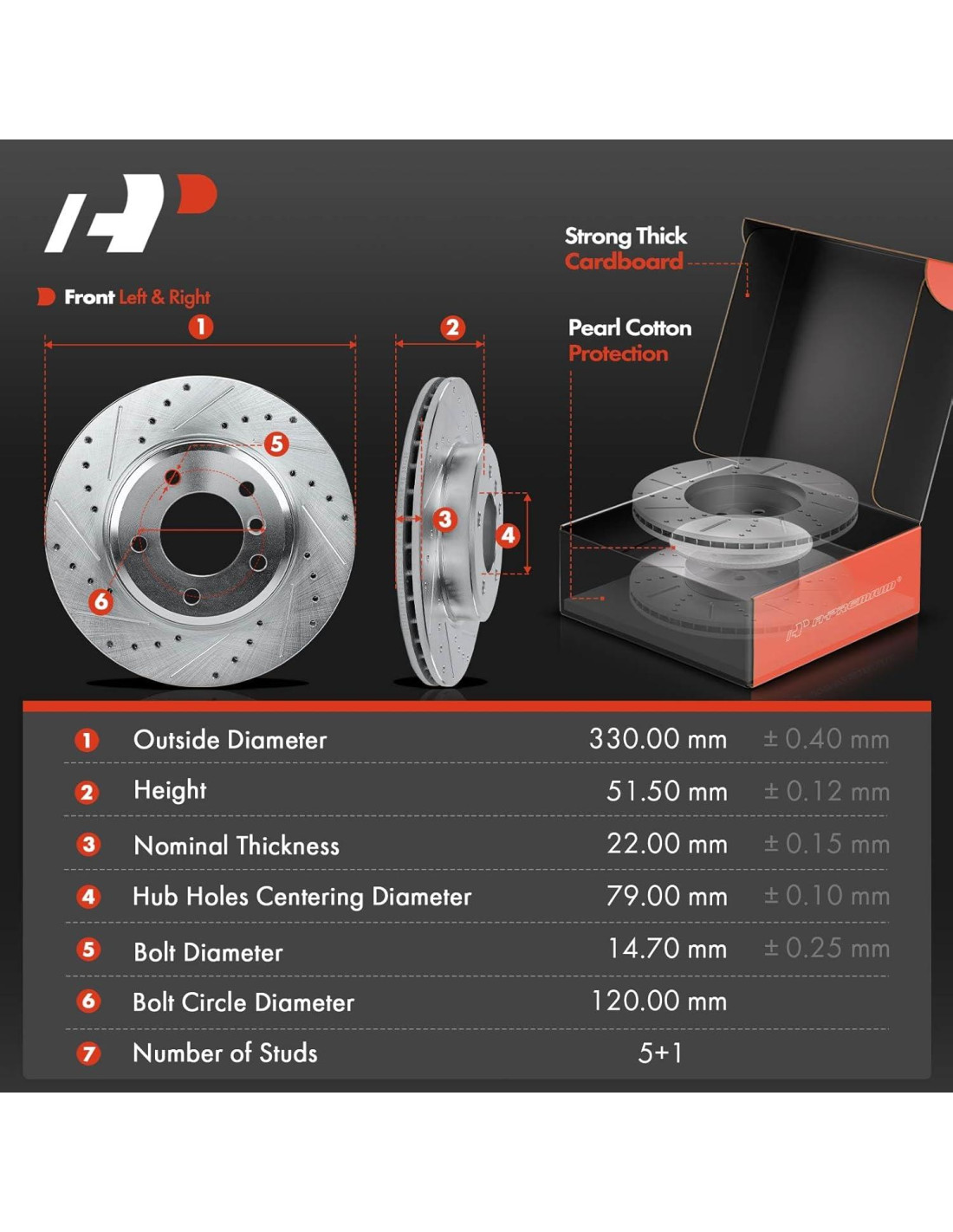 - [Número de Referencia]: El número de referencia de los Discos de Freno Perforados y Ranurados A-Premium: S-34173, S-34398, S34173, S34398 + número de referencia de las Pastillas de Freno: P-692, P-781, P692, P781--- Ajuste para Delante y Detrás Izquierdo y Derecho, Lado del Conductor y del Pasajero; Por favor ingrese la información de su vehículo en la esquina superior izquierda del listado y revise nuestra "Nota Especial" antes de ordenar
