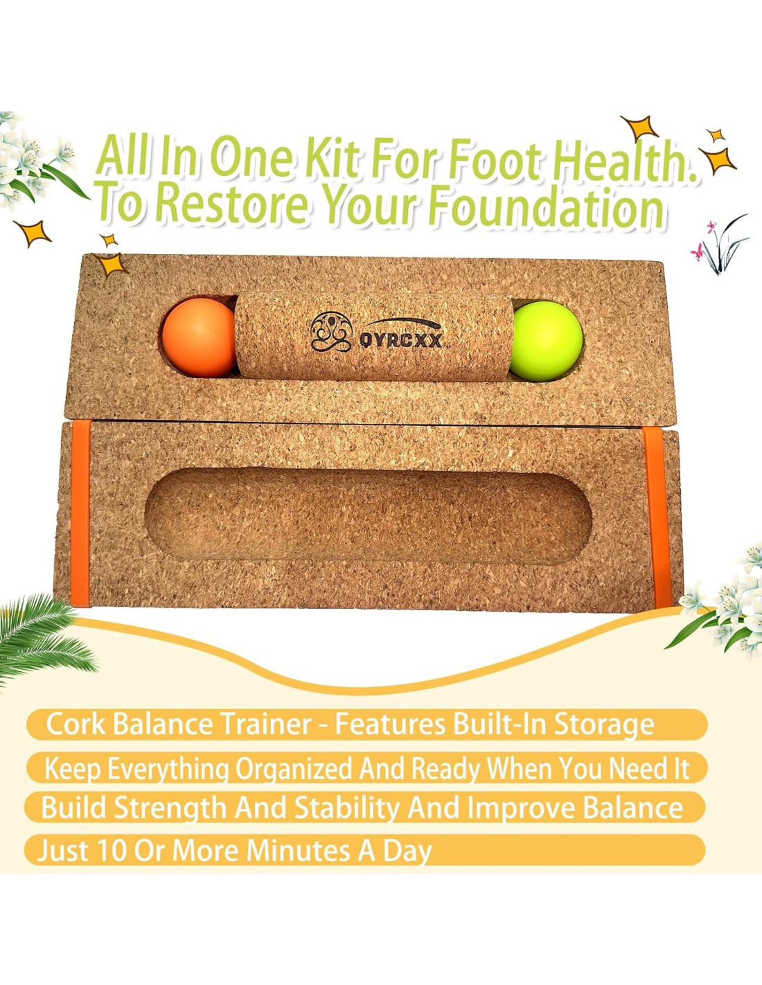 - 3. Almacenamiento Compacto y Portabilidad: Todos los componentes se almacenan en una tabla de equilibrio de corcho de 35cm x 10cm: se adapta a tablas de equilibrio para pies, rodillo mini y bandas, liviano para gimnasio en casa, viaje, puedes almacenar el conjunto de tabla de equilibrio en el bolsillo con cordón de 34cm x 43cm.