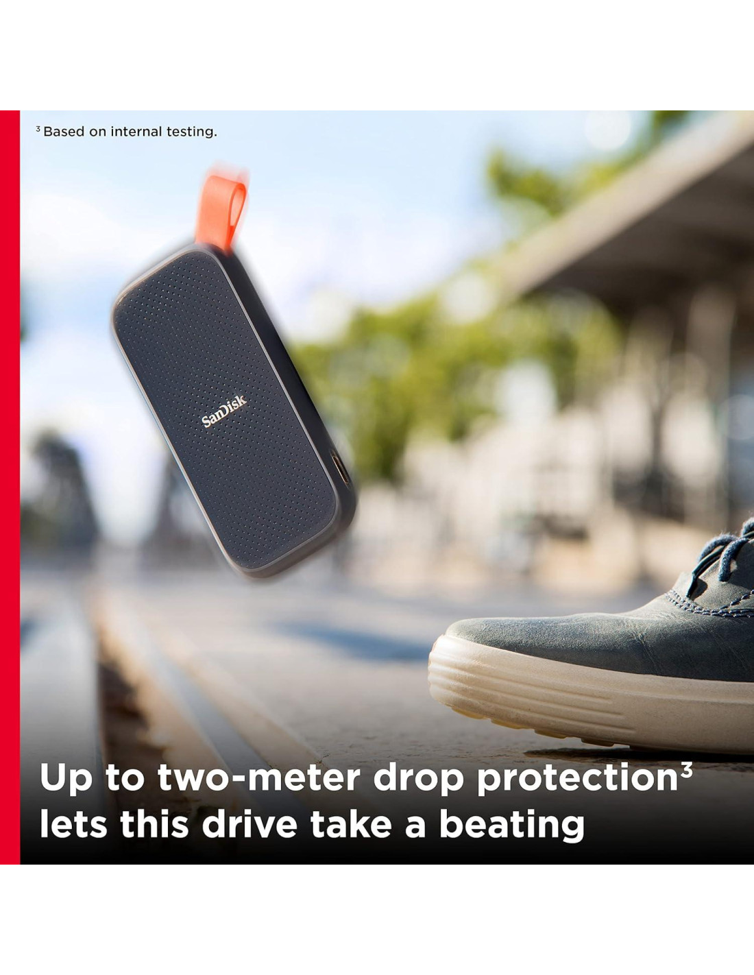 Con el SSD Portátil SanDisk que cuenta con velocidades de lectura de hasta 800MB/s, puedes almacenar tu contenido y recuerdos en una unidad rápida que se integra perfectamente en tu estilo de vida móvil. La protección contra caídas de hasta dos metros más un gancho de goma resistente para asegurar la unidad te brindan la tranquilidad de llevarla contigo a donde sea, cuando sea. De una marca de confianza para fotógrafos profesionales, el SSD Portátil SanDisk ofrece un rendimiento sólido y rápido en una solución de almacenamiento robusta pero asequible. (Las velocidades de escritura son más bajas. Basado en pruebas internas; el rendimiento puede ser menor dependiendo del dispositivo anfitrión, la interfaz, las condiciones de uso y otros factores. 1MB=1,000,000 bytes.)