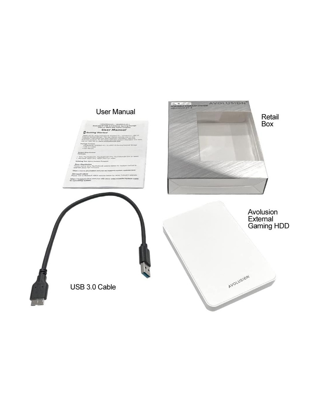 El Sistema de Almacenamiento Portátil Avolusion (Z1-S-WH) 1TB Ultra Delgado 2.5" SuperSpeed USB 3.0 Disco Duro Externo Portátil para Juegos (Blanco) está diseñado para atraer la atención del usuario de un vistazo con un chasis externo duradero y elegante. El Avolusion Z1-S-WH 1TB se esfuerza por un diseño de alta calidad en un elegante estuche duradero, con un recorte delgado, lo que hace que el Avolusion Z1-S-WH 1TB Disco Duro Externo para Juegos PS4 USB 3.0 sea una excelente pieza de dispositivo de almacenamiento en tu palma. Puedes conectar esto a tu puerto USB 3.0 de la consola de juegos para expandir instantáneamente la capacidad de almacenamiento de tu consola de juegos. Es completamente compatible con la consola de juegos PS4. (Preformateado). Tasa de transferencia SuperSpeed USB 3.0 de hasta 5.0 gbps de rendimiento extremadamente rápido. Características: Blanco Perla, Chasis Elegante, Disco Duro Externo para Juegos de 1TB de Capacidad Integrada, Instalación Fácil sin abrir la Consola de Juegos, Diseño Elegante, Alimentado por Bus USB (no se requiere adaptador de corriente AC adicional), Conectar y Usar, LED Azul para actividades de acceso a datos.