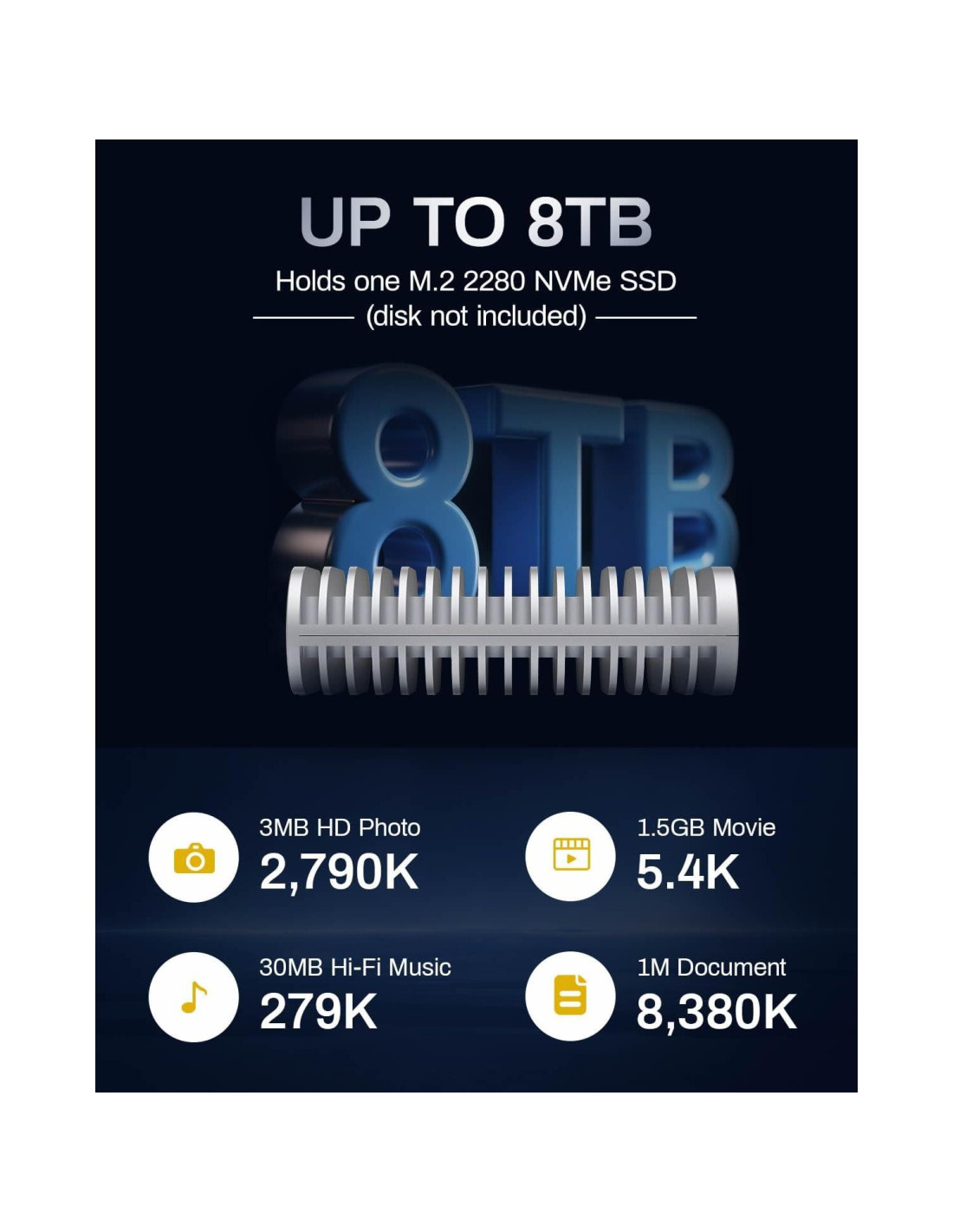 - Expandibilidad plug-and-play: La caja SSD D1 SSD Plus admite SSDs de tamaño M.2 NVMe 2280 de hasta 8TB. Ideal como un expansor de almacenamiento para Mac mini o caja SSD de arranque para macOS.