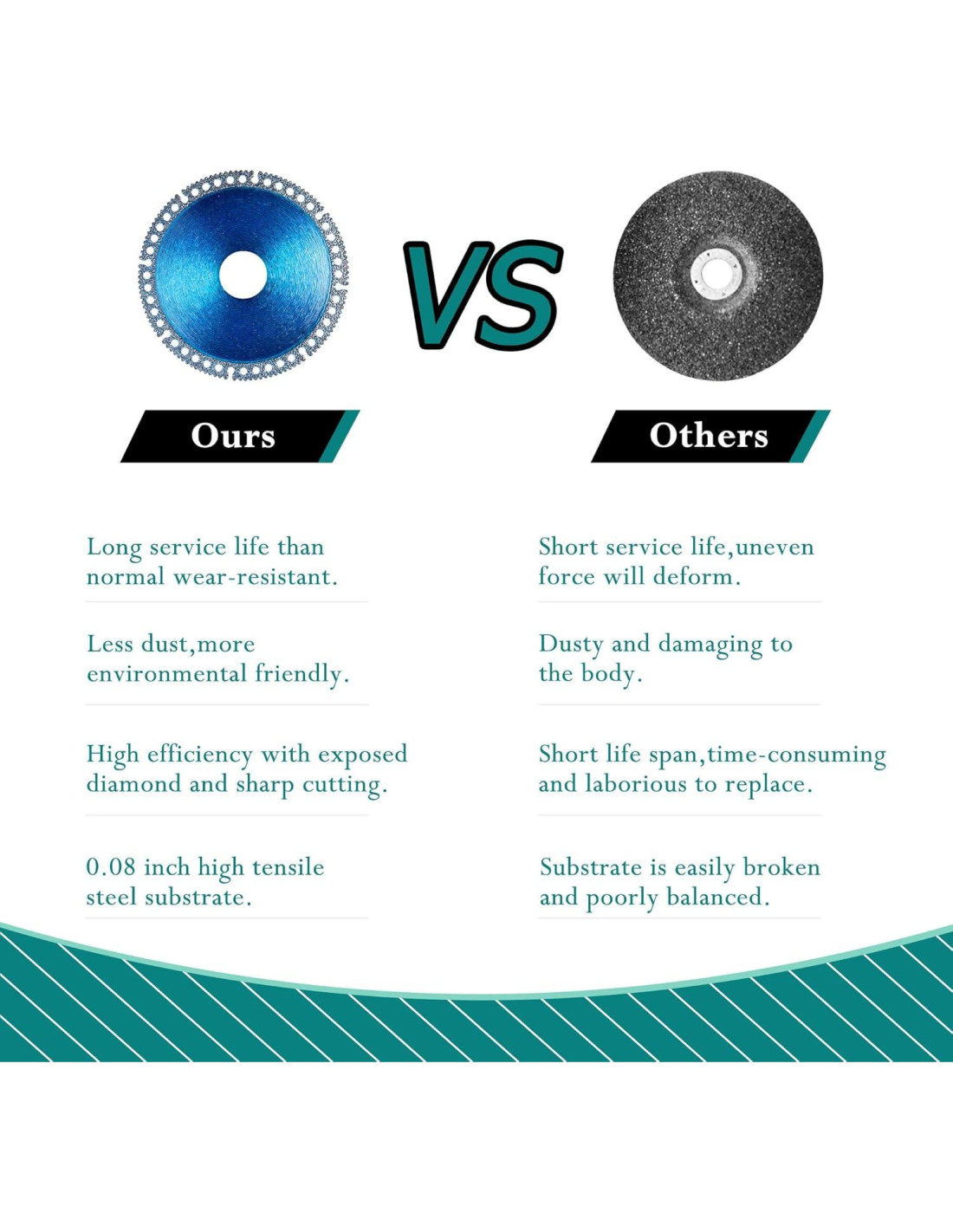 - Disco indestructible para amoladora: El disco indestructible afilado y duro de 4-1/2" para amoladora angular de 7/8" (Modelo 115 / Modelo 125) utiliza una matriz de acero de alto manganeso con diamante, nuevo proceso de soldadura, hoja mejorada y actualizada. No solo es más seguro y rápido, sino que también tiene una vida útil más larga.