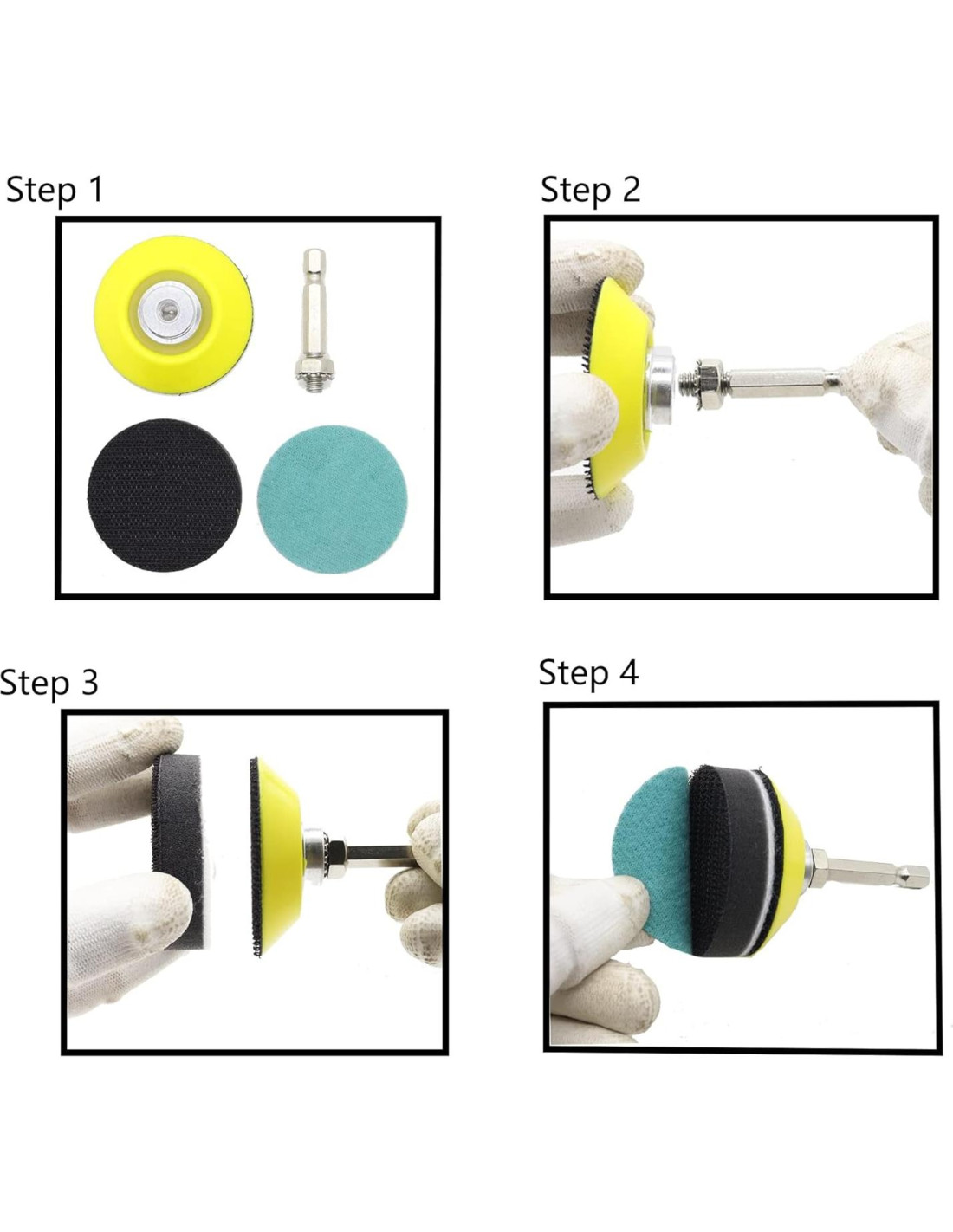 - Paquete de 133pcs: 120pcs discos de lijado de 2pulgadas con diferentes niveles de grano (60-7000) y 2 almohadillas de amortiguación, 1 almohadilla de lijado con puntas redondas/hexagonales de 6MM, 1 almohadilla de lijado con puntas redondas de 3MM/6MM, y 5 almohadillas de pulido planas