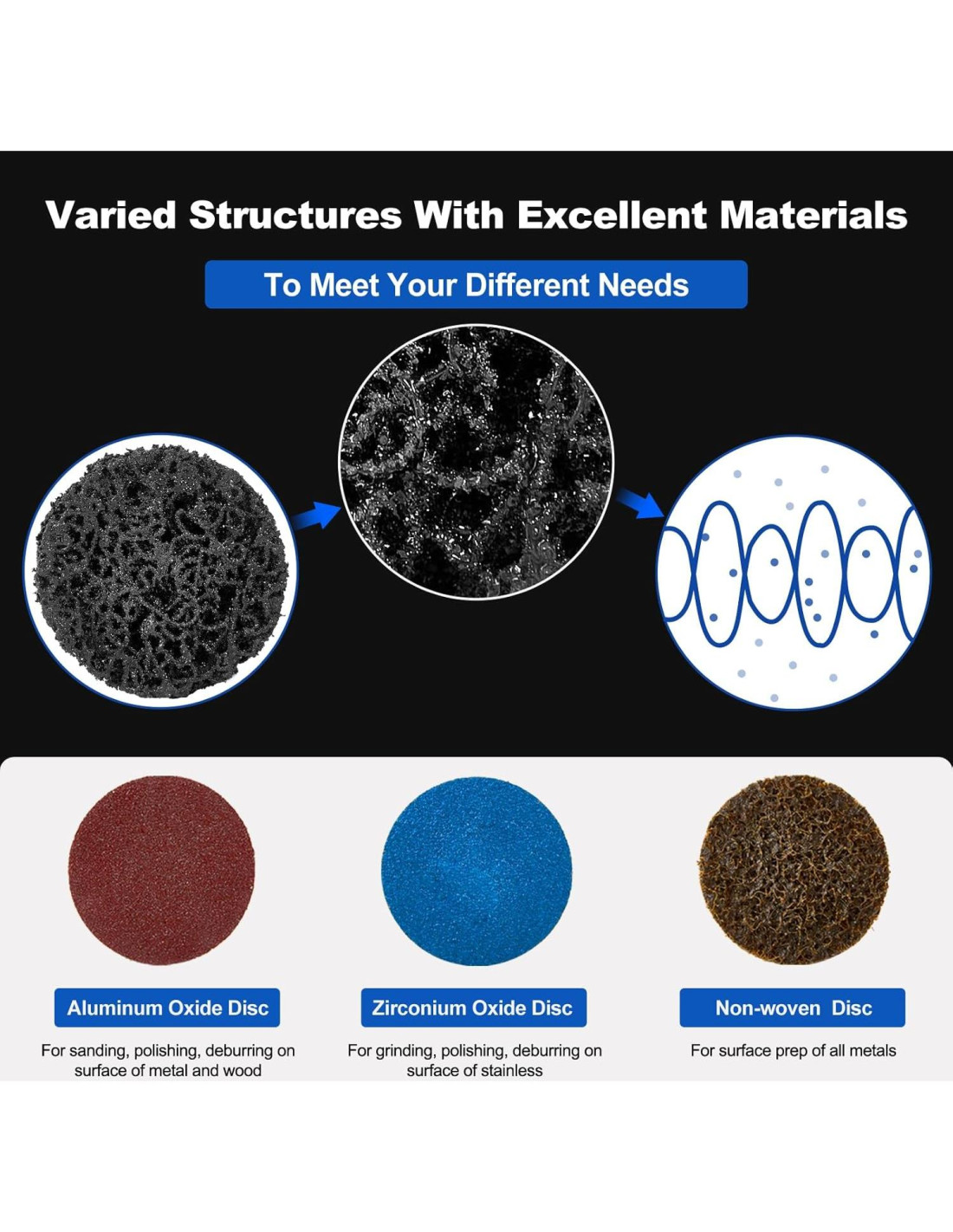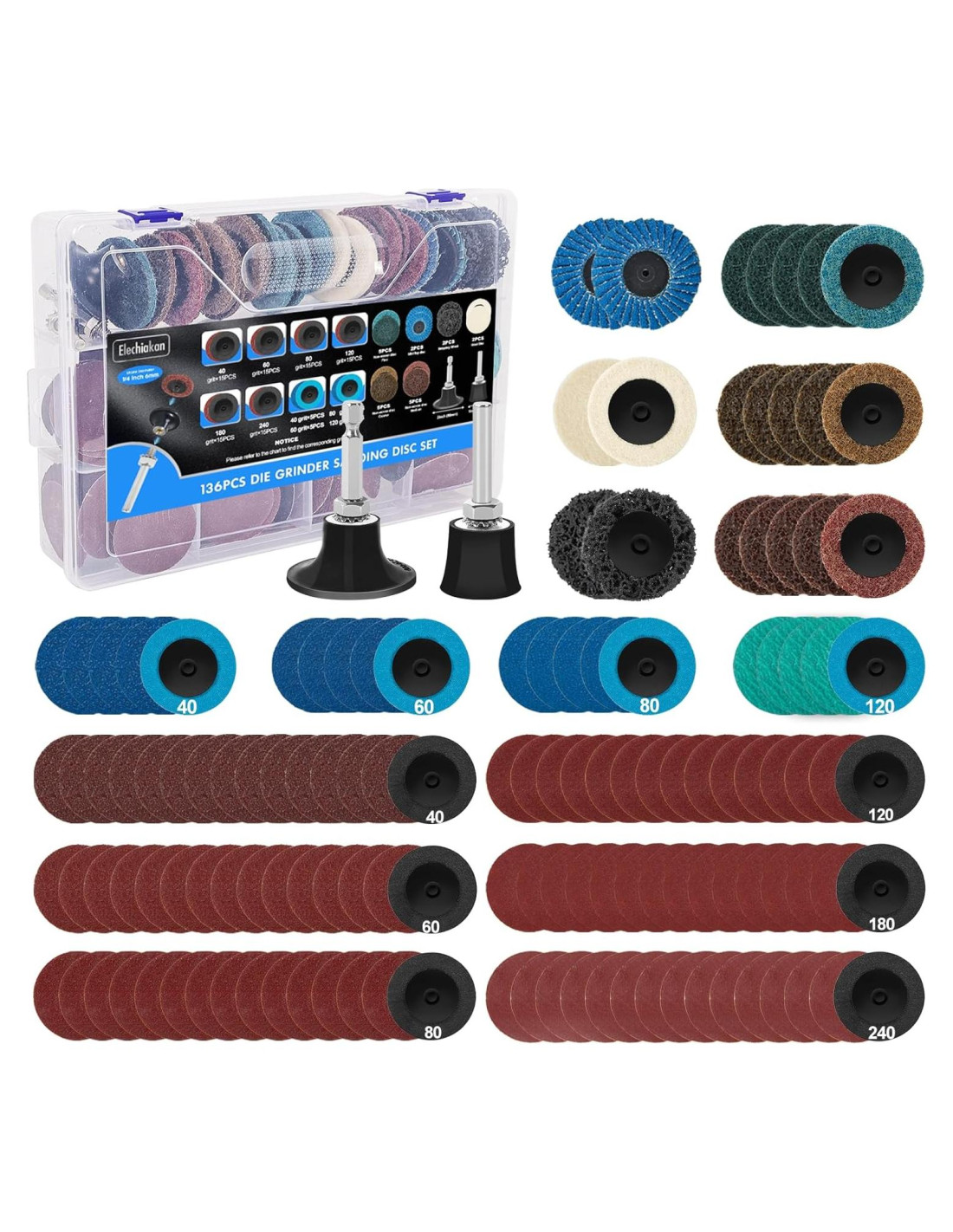 - Lo que recibirás: 90 discos de óxido de aluminio disponibles de 40/60/80/120/180/240 de grano, 20 discos de óxido de zirconio de 40/60/80/120 de grano, 15 discos no tejidos de 120/180/240 de grano, 2 discos de aletas micro, 2 discos de lijado de amoladora negra y 2 discos de lana, cubriendo todas las necesidades de lijado.