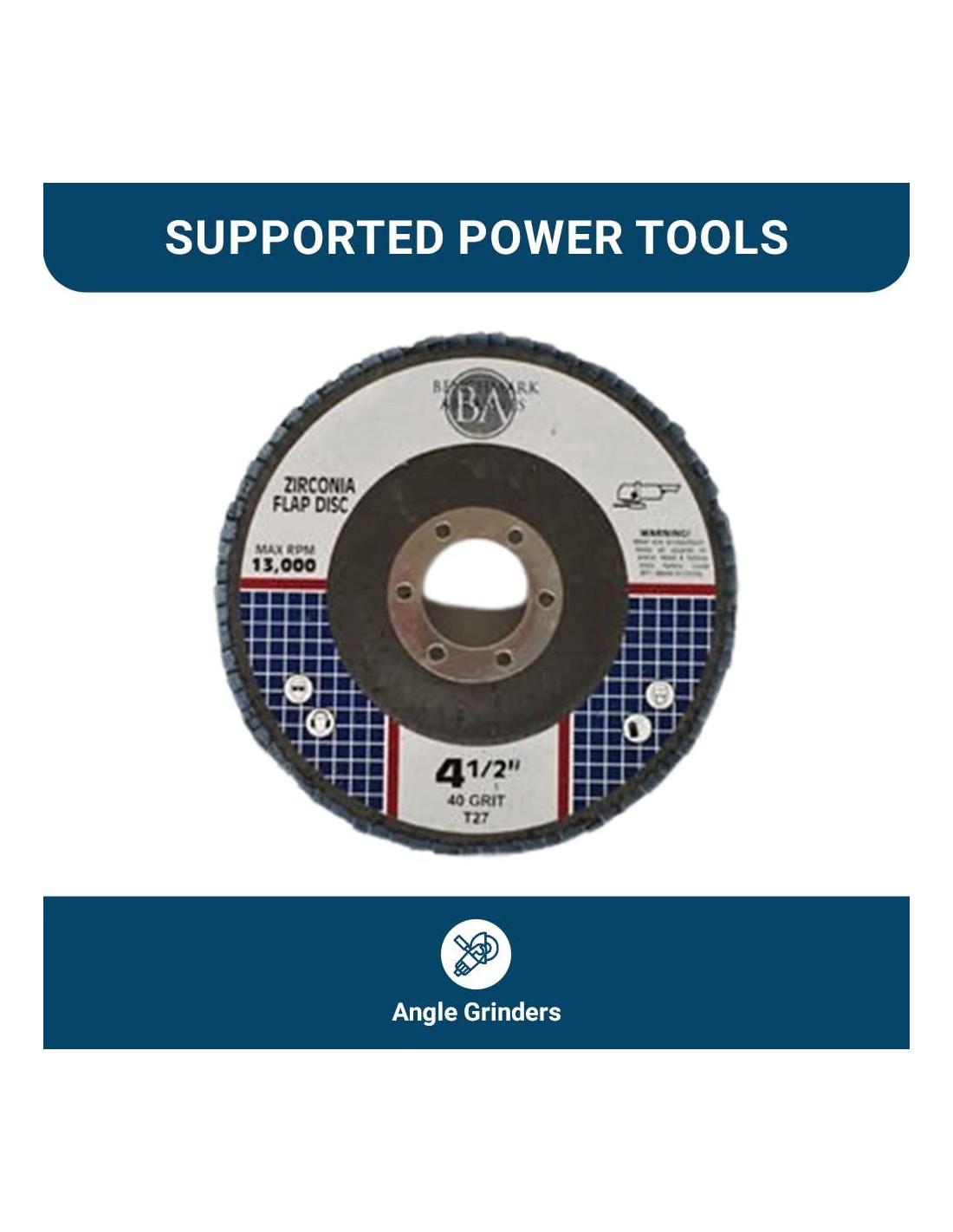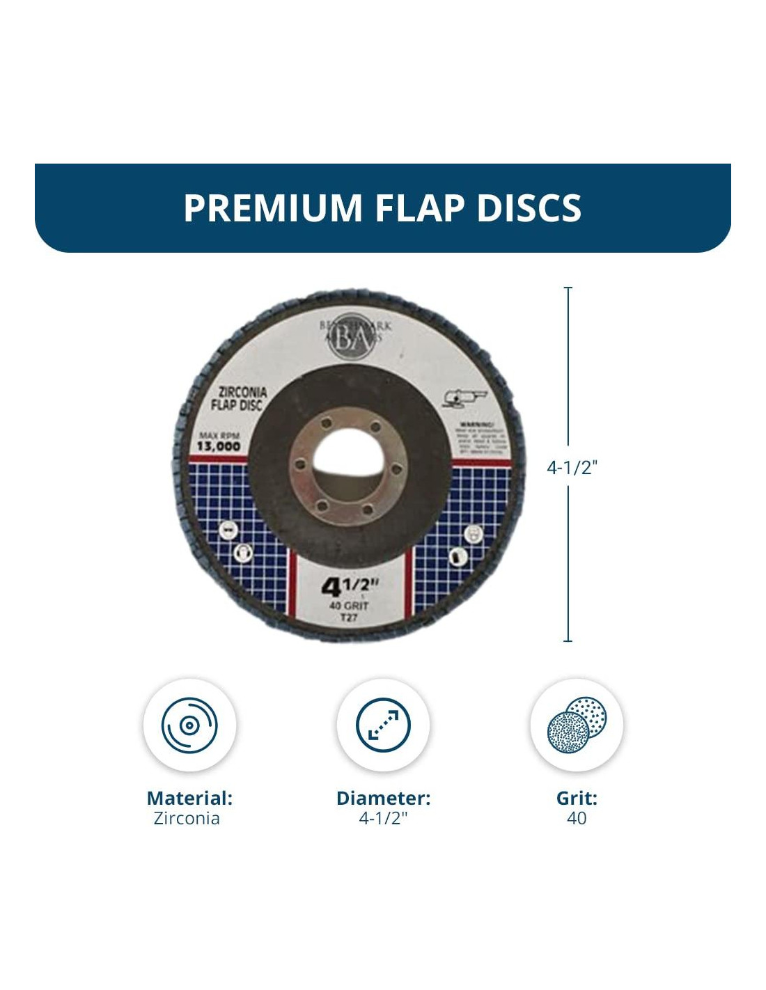 - USO MULTIFUNCIONAL: Los discos de aleta de la rueda de amoladora Benchmark Abrasives de 4.5" x 7/8" T27 sobresalen en diversas tareas, incluyendo mezcla de superficies, biselado, esmerilado, desbarbado, chaflanado de bordes, acabado, eliminación de material y removedor de óxido. Diseñados tanto para profesionales como para entusiastas del bricolaje, estas ruedas de esmeril de 4 1/2 aseguran resultados eficientes y precisos para cada proyecto. Estos accesorios para amoladora angular están listos para cualquier tarea en mano.