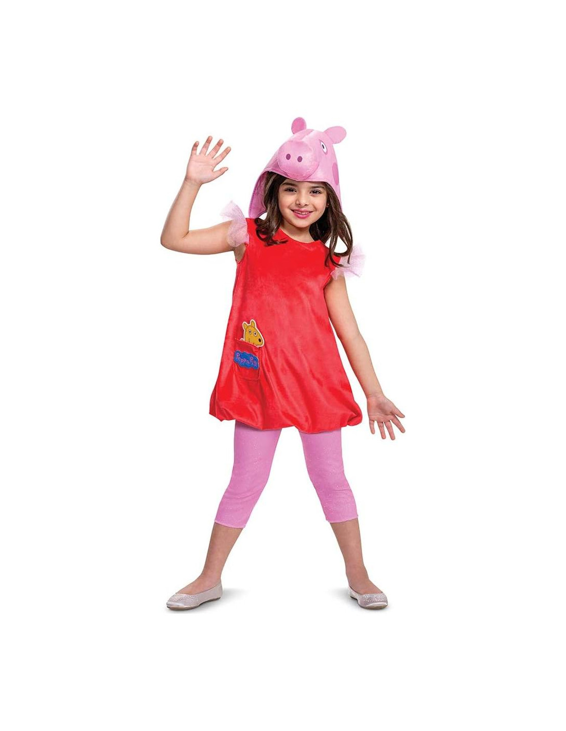 Peppa Pig es una serie animada para niños en edad preescolar sobre una pequeña de 4 años llamada Peppa, que es traviesa y un poco mandona. Ella vive con su hermanito George, Mami y Papi Pig. El programa sigue a Peppa mientras navega por la vida familiar diaria y sus primeras experiencias. Este disfraz deluxe está hecho de material crush suave, 100% poliéster, con un lindo sombrero Laplander inspirado en Peppa con un acabado de felpa. El vestido incluye leggings adjuntos con un cierre de gancho y bucle en la parte posterior para facilitar el vestido y la remoción. ¡Haz que tu pequeño sea el más lindo en la próxima fiesta de disfraces o publique fotos increíbles en las redes sociales! ACERCA DE DISGUISE - Disguise es un líder en la industria de Halloween creando disfraces y accesorios innovadores y que marcan tendencia. Su equipo está compuesto por un grupo de talentosos diseñadores internos, escultores y artistas gráficos de diversos antecedentes creativos, incluyendo diseño de esculturas para películas de Hollywood, la industria de la moda y bellas artes exhibidas en galerías. Con sede en San Diego, Disguise produce disfraces y accesorios bajo muchas de las marcas licenciadas más importantes del mundo, así como sus propias marcas, para los minoristas más grandes de la nación, incluyendo tiendas especializadas, de fiestas y pop-up.