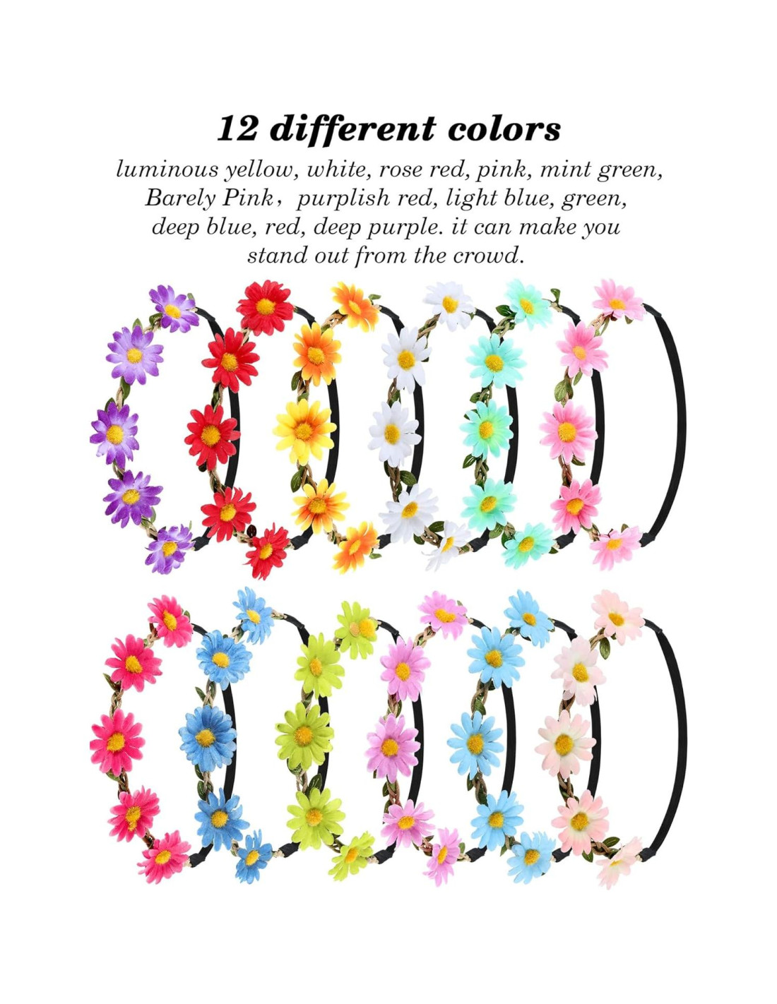 - El paquete incluye: 12 diademas de margarita, 12 collares de signo de paz arcoíris, 12 pares de gafas de sol hippie redondas con bordes dorados, un atuendo a juego; Colorido y vibrante, puedes compartir esta encantadora colección de accesorios hippies con amigos y familiares y pasar un buen rato