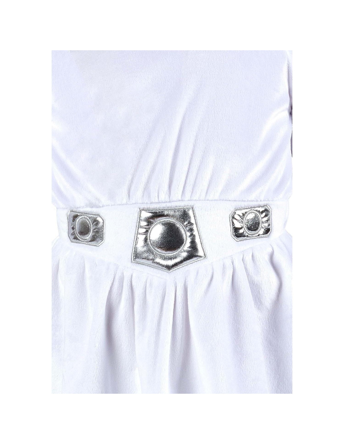 Lidera la Rebelión con el COSTUME DE PRINCESA LEIA PARA NIÑA PEQUEÑA STAR WARS. Este vestido de tela presenta una parte superior suelta, falda acampanada y mangas acampanadas. Se asegura con cierres de gancho y bucle en la parte posterior e incluye un cinturón de tela con papel de aluminio plateado, interior de espuma y una correa elástica. También incluye un tocado de tela de los icónicos moños de cabello de la Princesa Leia. Todos los disfraces están hechos de material de alta calidad con impresiones de alta resolución. Jazwares Costume Play crea disfraces para Halloween y juegos cotidianos que están hechos para cada miembro de la familia. Producto oficialmente licenciado de STAR WARS de Jazwares. Incluye: (1) Vestido de Princesa Leia para niña pequeña (1) Cinturón de Princesa Leia (1) Tocado de Princesa Leia - Vestido - Tocado
