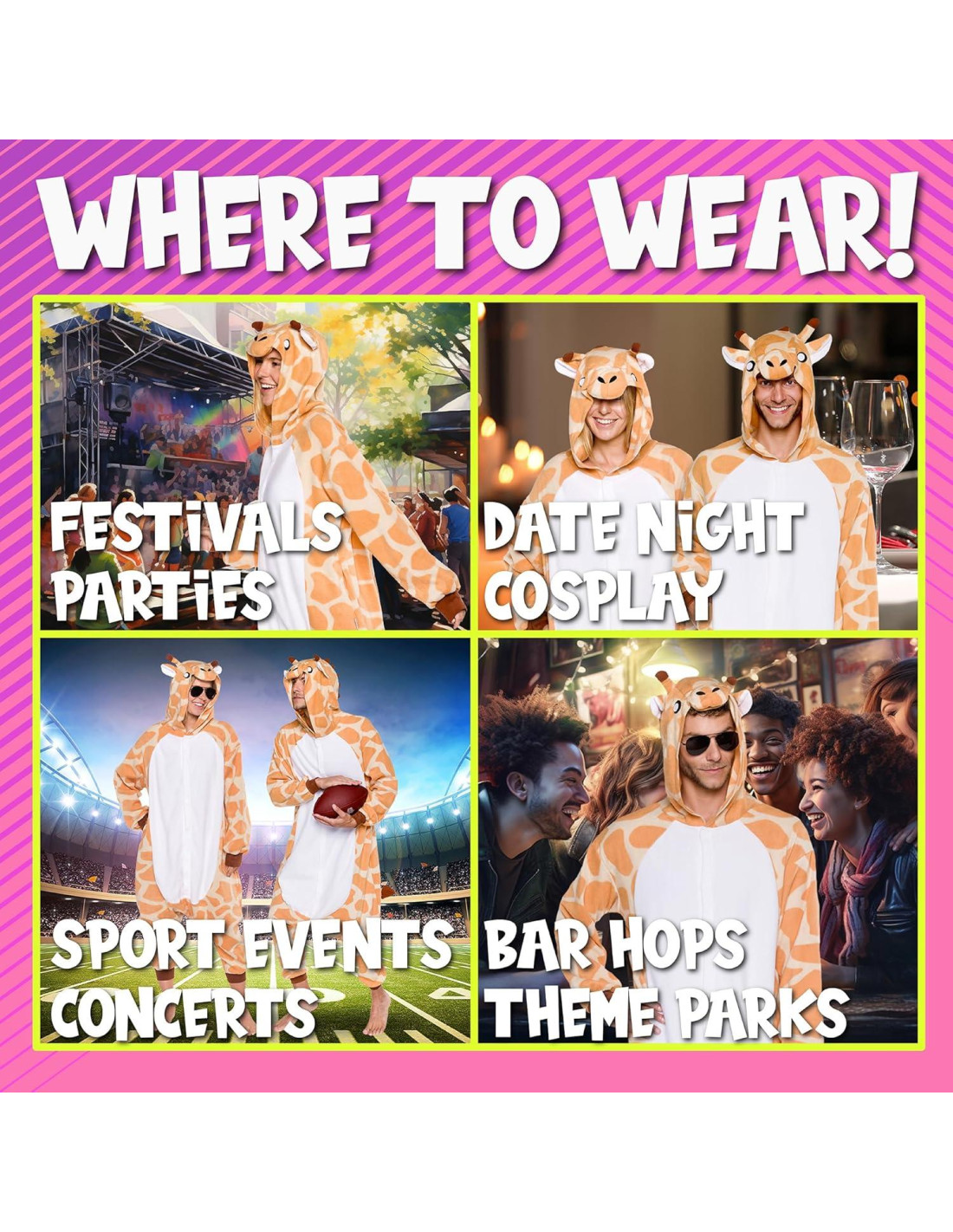 - DETALLES - Los adorables diseños de una sola pieza de animal cuentan con una capucha con ojos, dientes y nariz para un efecto completo. Las colas y los diseños en el pecho ayudan a completar tu aspecto de cosplay definitivo. Combina con un par de pantuflas de animal (no incluidas) para tu próxima fiesta de pijamas.