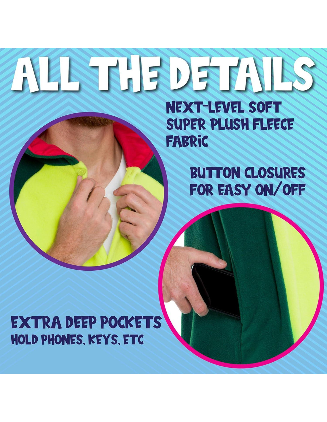- CÓMODO - Una mezcla especial de comodidad y diversión, estos materiales de felpa son suaves al tacto y te mantendrán abrigado durante esos fríos meses de invierno. El cierre de botones te permite vestirte rápidamente mientras que el corte holgado te da la flexibilidad de usarlo fácilmente sobre tu ropa o chaqueta existente.
