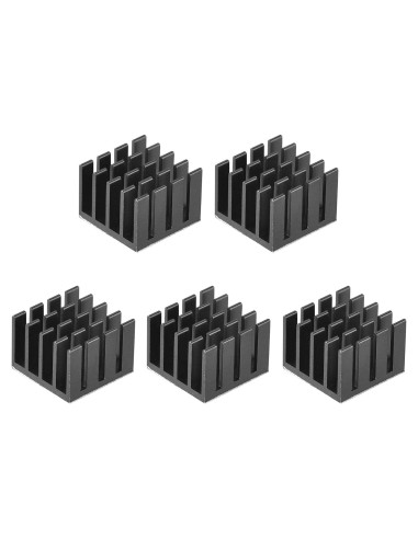 Característica: Este radiador viene con un adhesivo de conductividad térmica, ayuda a disipar el calor, fácil de usar, fuerte adherencia. El radiador de aluminio se puede aplicar en impresoras 3D, chip IC, MOS, chipset electrónico, disipación de calor o en cualquier lugar donde necesite un radiador eficiente. Especificación: Color: Negro Material: Aleación de Aluminio Tamaño Total: 14 x 14 x 10 mm (0.55 x 0.55 x 0.39 pulgadas) Contenido del Paquete: 5 x Radiador