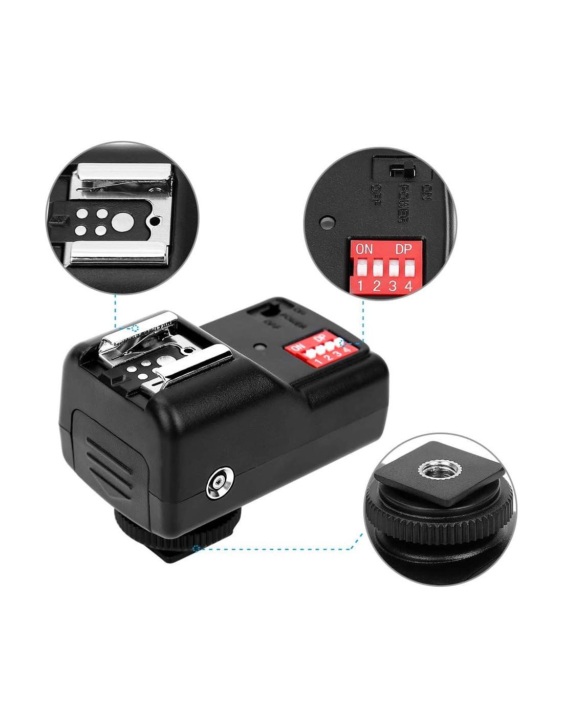 - ZAPATA CALIENTE ESTÁNDAR: Este disparador de flash puede funcionar con todas las cámaras con soporte de zapata caliente. Y equipado con interfaz de expansión de salida de sincronización PC, con cable PC de 3.5mm o 6.35mm puede ser compatible con más flashes.