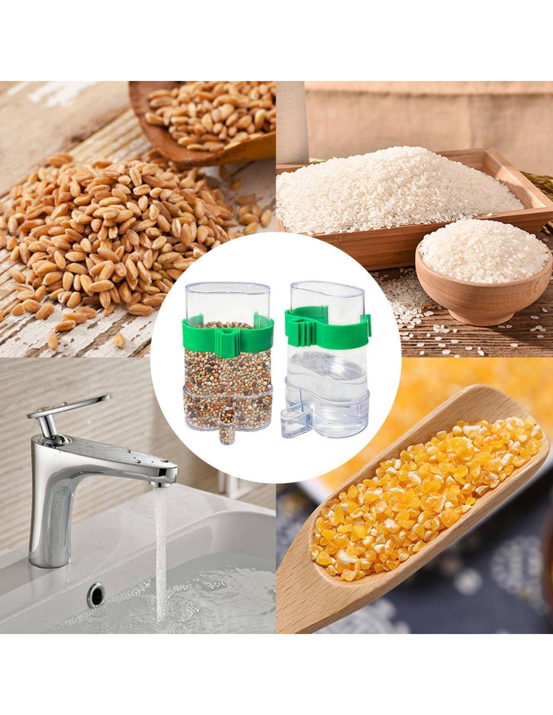- [Diseño Automático] -- El contenedor de comida para semillas puede proporcionar a las aves un suministro continuo de comida o agua. Después de que el agua o la comida se agoten, fluirá automáticamente hasta que el comedero esté lleno. Previene eficazmente que las aves beban agua o comida sucia. La gran capacidad puede proporcionar a las aves comida durante unos días, ya no te preocupes por que el ave tenga hambre cuando salgas.