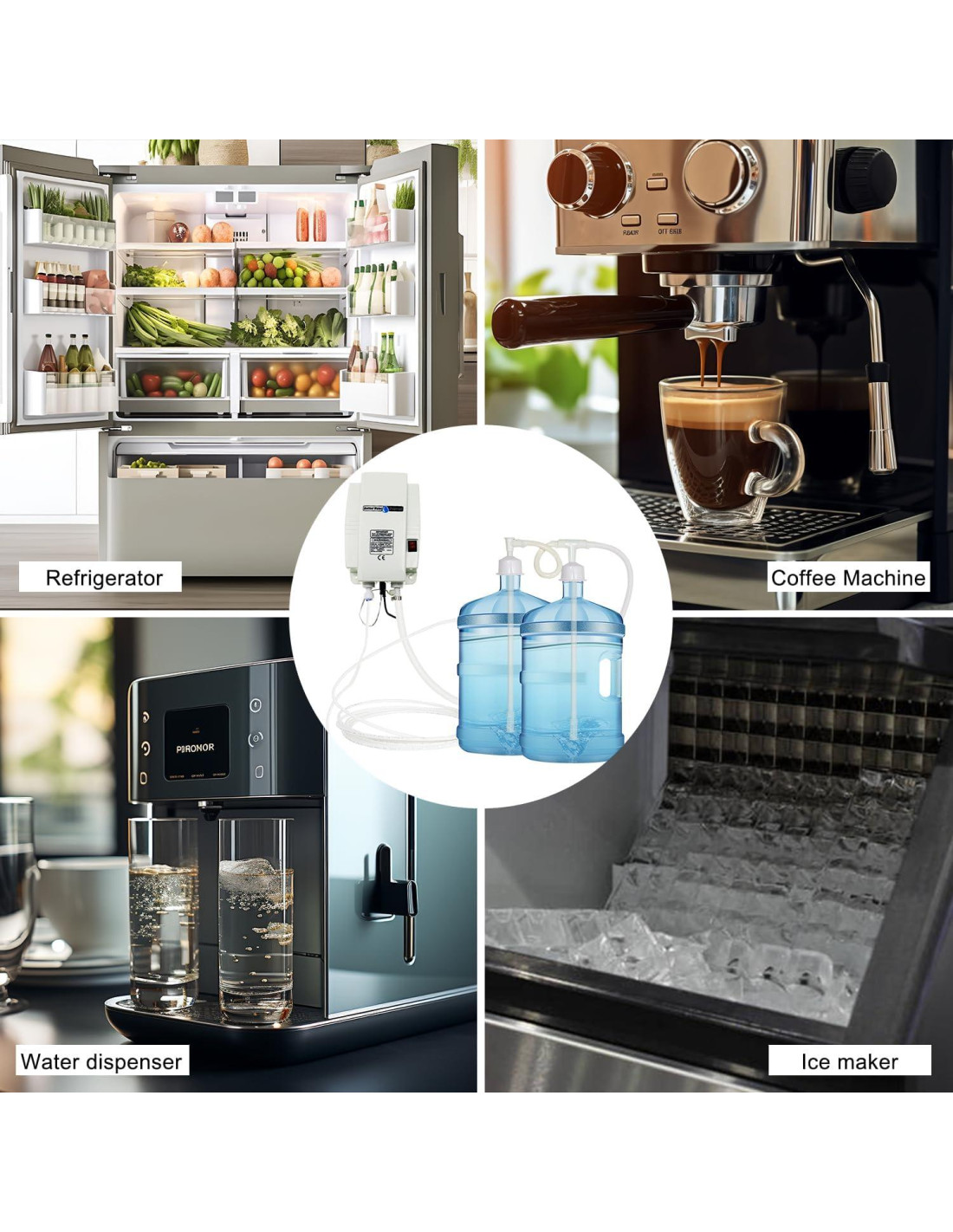- [MÚLTIPLES USOS] El dispensador de bomba de agua automática se puede usar en una amplia gama de entornos con una amplia gama de compatibilidad. Suministra fácilmente y de manera eficiente agua pura y fresca a máquinas de hielo, refrigeradores, cafeteras, grifos de cocina y más.