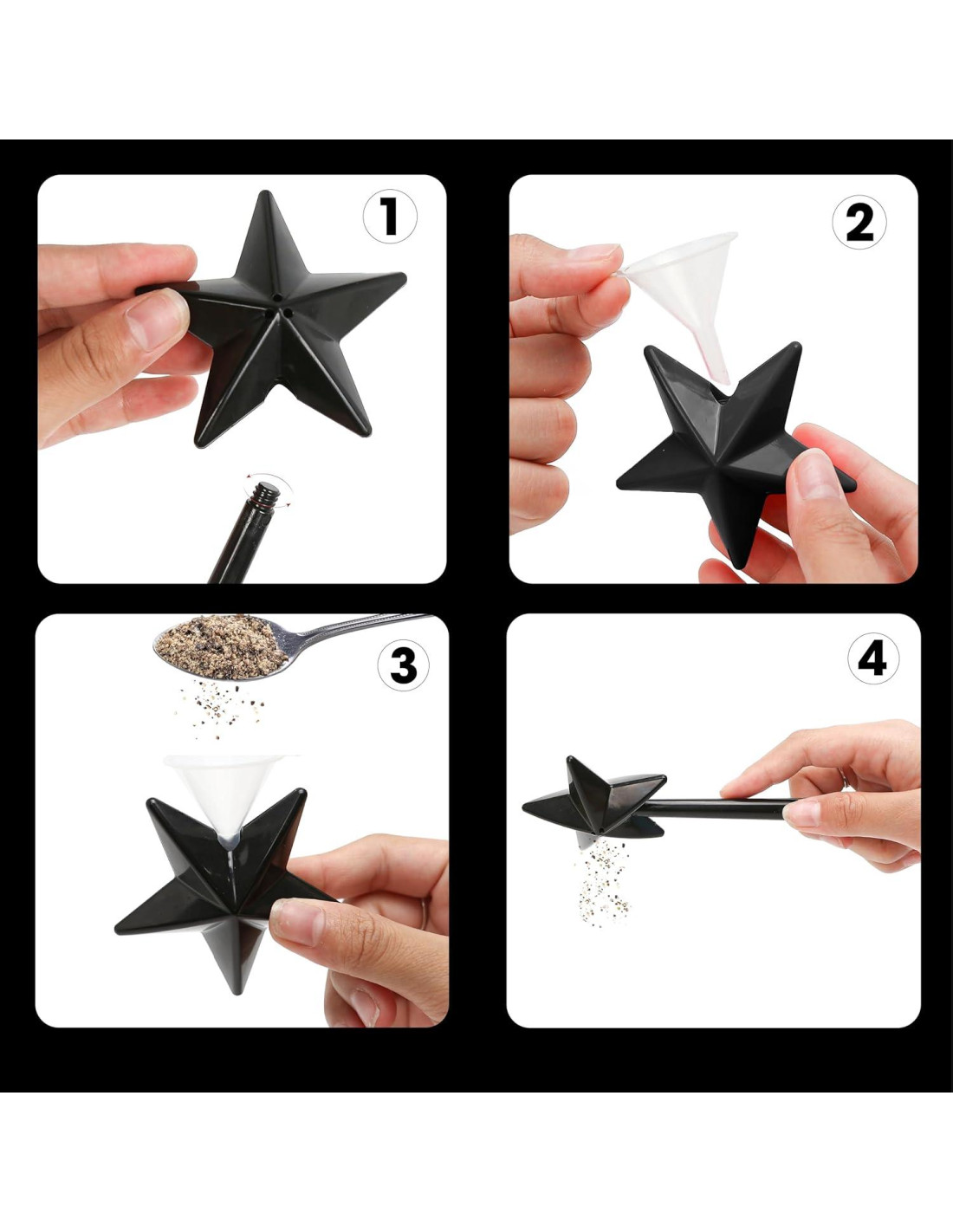 - USO VERSÁTIL: Los dispensadores en forma de estrella se pueden usar para sal, pimienta, hierbas, especias y otros condimentos, lo que los convierte en un regalo perfecto para familiares y amigos.