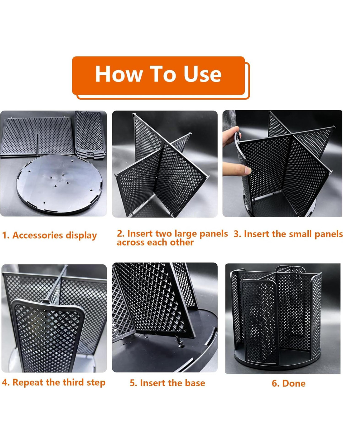 - Componentes incluidos: 1* Base Rotativa, 2* Panel Grande, 4* Compartimentos