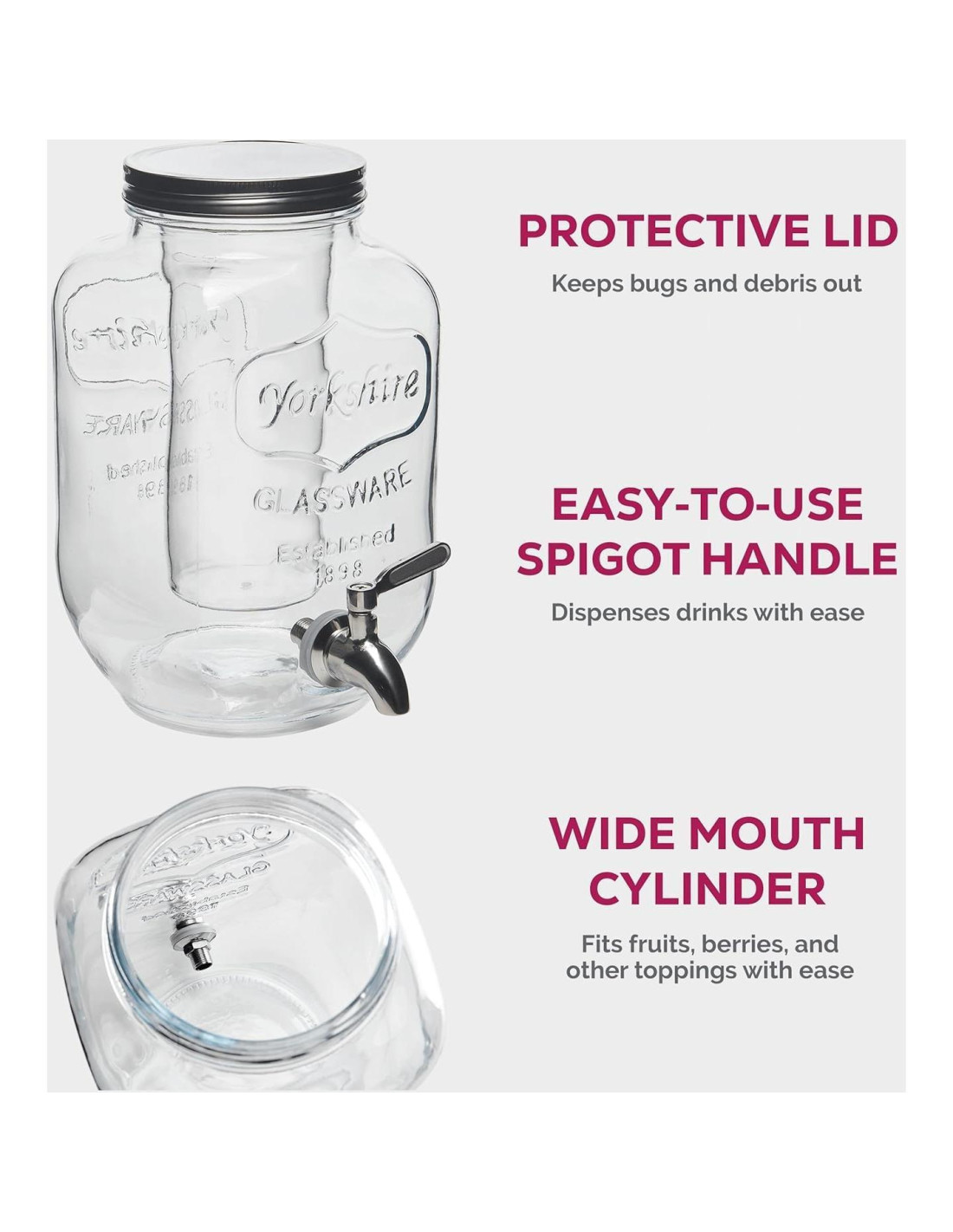 - Dispensador de Bebidas de Té: Fabricado con vidrio de grado premium, este duradero y resistente tarro de bebida de té es perfecto para fiestas. El infusor de frutas incluido hace que dar sabor a las bebidas sea muy fácil.