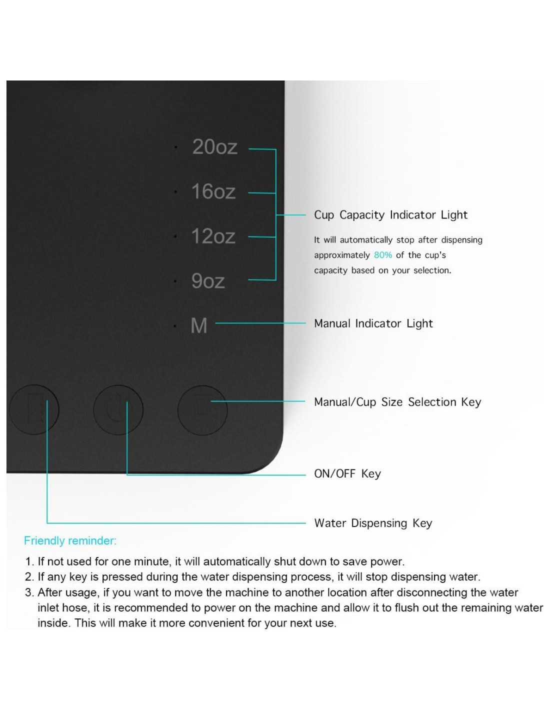 - ¡Recuerda inteligentemente tus preferencias! El dispensador de agua viene con una función de memoria inteligente, registrando el último volumen de agua utilizado. Ofrece opciones de dispensación de agua automáticas y manuales: dispensación automática inteligente para conveniencia y rapidez, así como control manual para uso personalizado. Ya sea que prefiera simplicidad y facilidad o preste atención a la calidad meticulosa, puede satisfacer fácilmente sus necesidades.