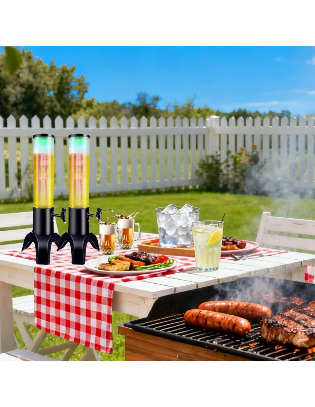 - Dispensador de Torre Mimosa: El dispensador de bebidas de cerveza es fácil de rellenar y limpiar, y acomoda a todos en la mesa sin tener que rellenar la torre una y otra vez. Adecuado para una variedad de bebidas, incluyendo jugo, té helado, vino, cerveza y más.