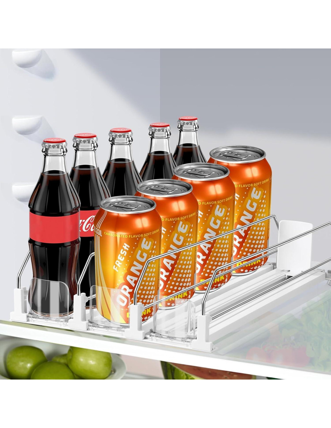 - Organizador de Bebidas Versátil: Este estante dispensador de bebidas es perfecto para refrigeradores, encimeras, congeladores de garaje y estantes de despensa. Con este organizador de bebidas, puede mantener todas sus bebidas organizadas y a la vista. Hay tiras adhesivas en la parte inferior, y puede optar por adjuntar el estante de almacenamiento de latas de soda al estante del refrigerador para evitar que se deslice.