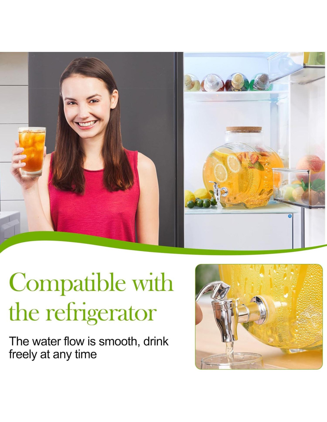 - Material Seguro: construido de vidrio transparente y resistente a bajas temperaturas, este dispensador de bebidas es adecuado para refrigeración y para contener bebidas frías sin ningún olor a plástico; La amplia abertura simplifica la limpieza y permite la fácil adición de hielo y rodajas de fruta, haciéndolo ideal para jugo, té de limón y cervezas frías