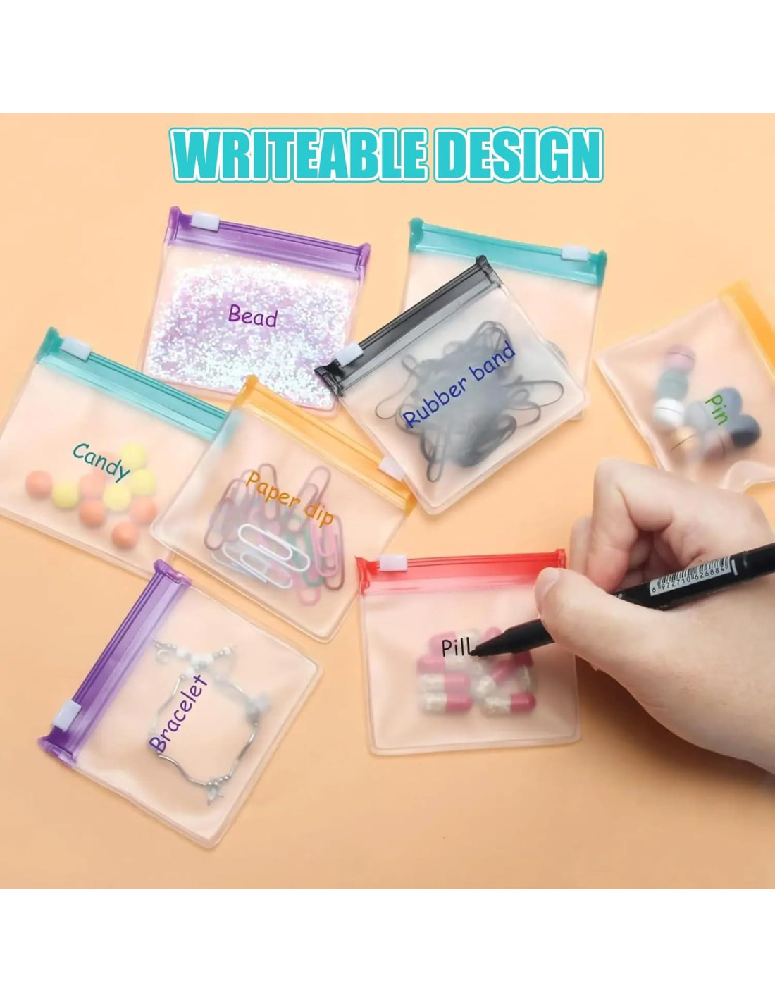 - [Aplicaciones Versátiles] - Estas bolsas de plástico reutilizables no son solo para esto. Pueden organizar artículos pequeños como aretes, adornos, cuentas, botones, monedas, caramelos, galletas, tornillos, nueces, etc. Perfectas para viajar y ahorrar espacio de almacenamiento.