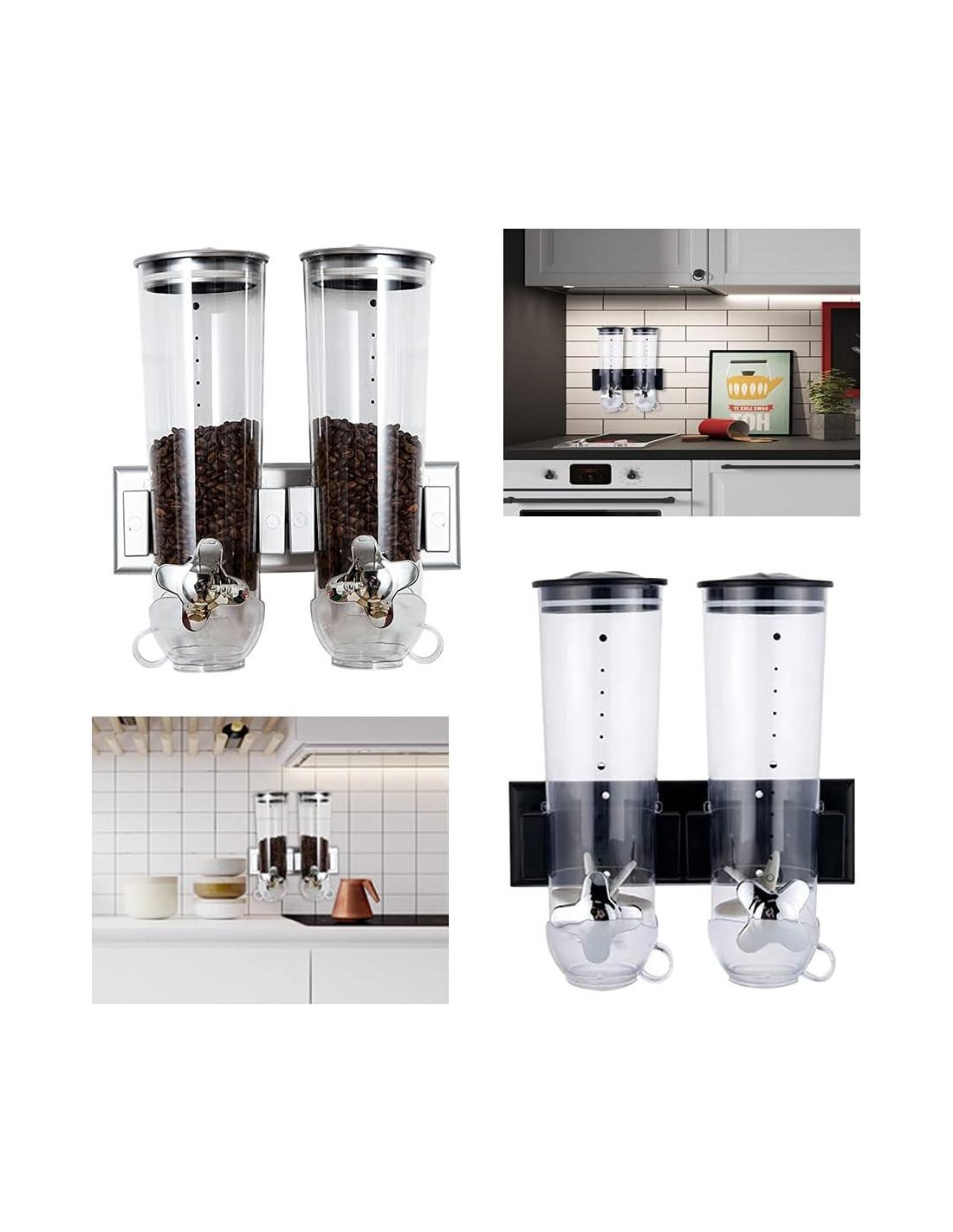 - [Aplicación] Diseñado para mantener la frescura y el sabor, es un dispensador de granos secos doble para nueces, dulces, granos y otros granos pequeños. Fácil de instalar en cualquier pared en un bar de desayuno de hotel, tienda de dulces, mercado, tienda de avena o cafetería. No solo puede ser un muy buen almacenamiento de alimentos, sino que también puede ahorrar espacio en el escritorio, ¡puede utilizar mejor el espacio!
