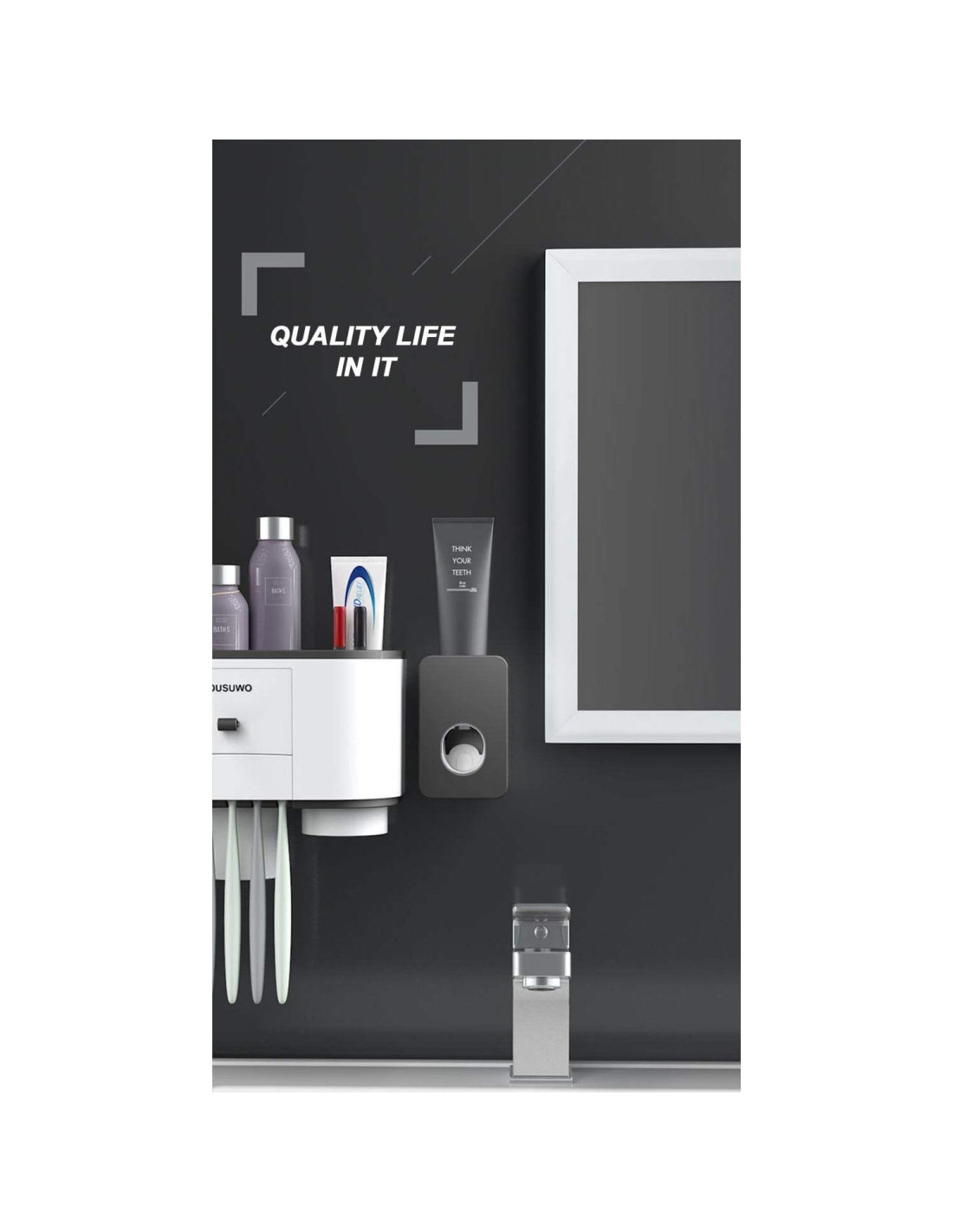 - [Fácil de instalar] No necesitas perforar agujeros en la pared y no necesitas herramientas. Solo pégalo con la cinta adhesiva proporcionada. Antes de aplicar la cinta adhesiva del dispensador de pasta de dientes, necesitas limpiar la pared, luego presionar fuerte para que quede firme, y esperar a que la cinta se ajuste bien a la pared antes de usarlo.