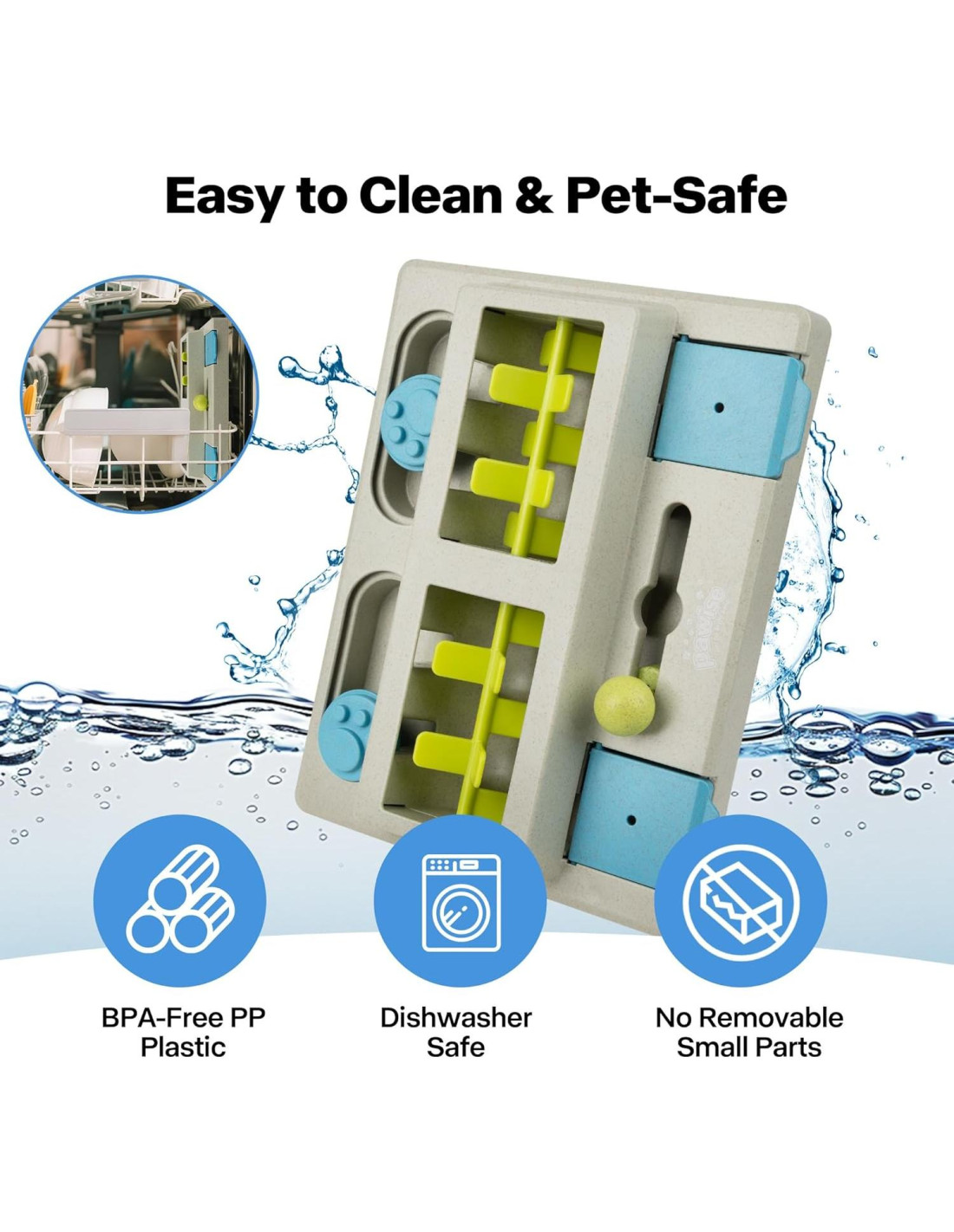 - Fácil de limpiar: Mantenimiento sin esfuerzo. Equipado con una base antideslizante, el rompecabezas se mantiene en su lugar durante el juego. Además, es apto para lavavajillas, lo que facilita la limpieza. Este juguete de rompecabezas interactivo es una excelente opción para perros pequeños que necesitan limpieza regular.